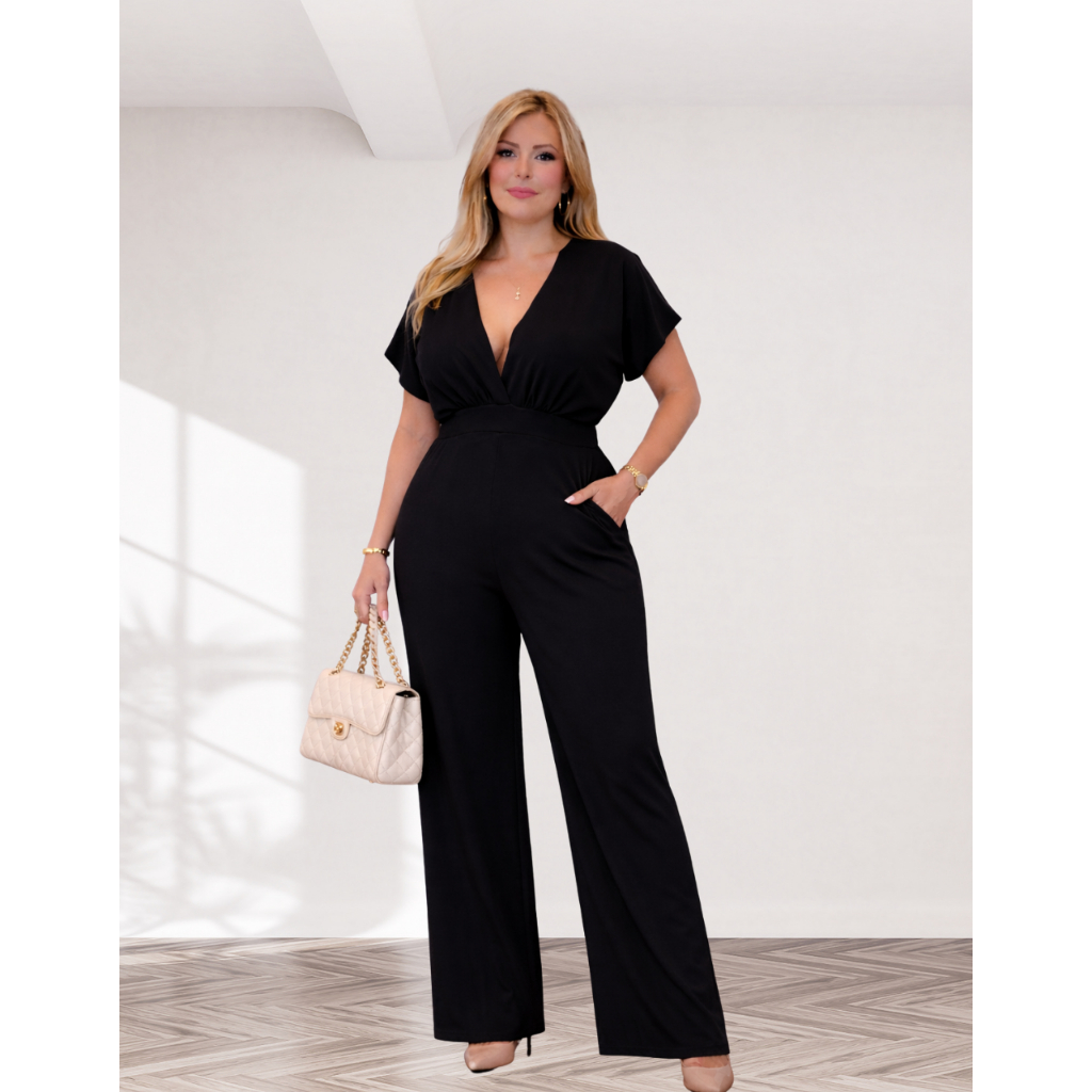 Macacão Feminino Pantalona Elegante Chique Simples Com Bolso Cintura Alta