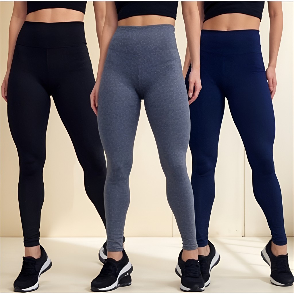 Kit 3 Calças Feminina Legging Grossa Para Academia Fitness Cós Alto