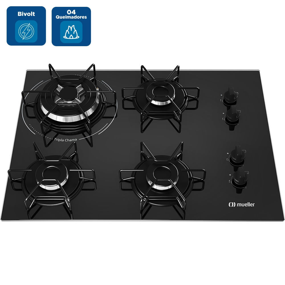 Cooktop a Gás Mueller 4 Bocas Tripla Chama Preto MCG134BG1 – Bivolt