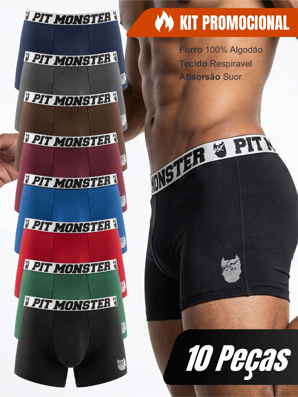 Kit 10 Cuecas Boxer Box Pitmonster De Microfibra Adulto