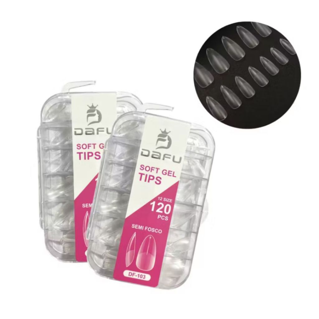 kit Unhas Postiças dafu Soft Gel Transparente 100 Unid Bailarina com box