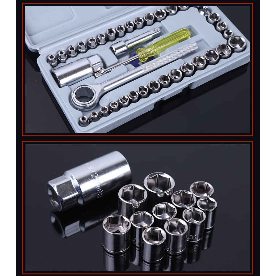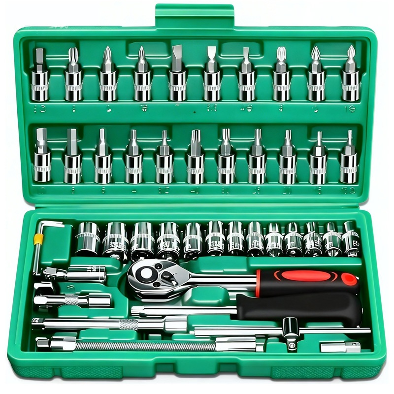 40 Peças / 46 Peças Jogo De Chave Catraca Caixa De Ferramentas Completa Reversível Soquetes Maleta