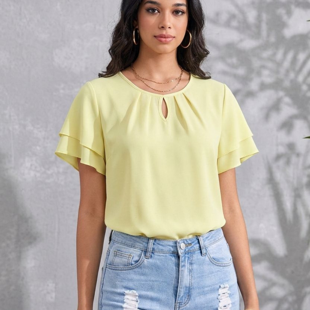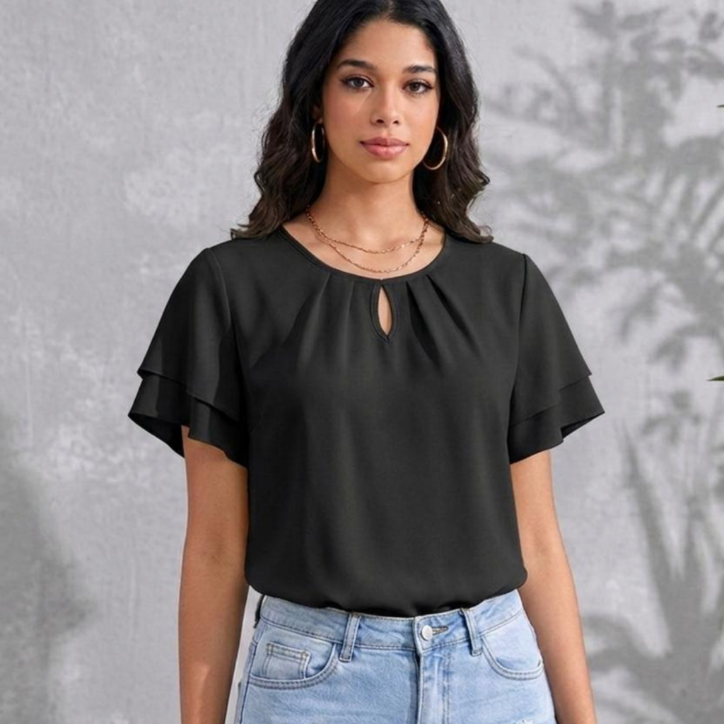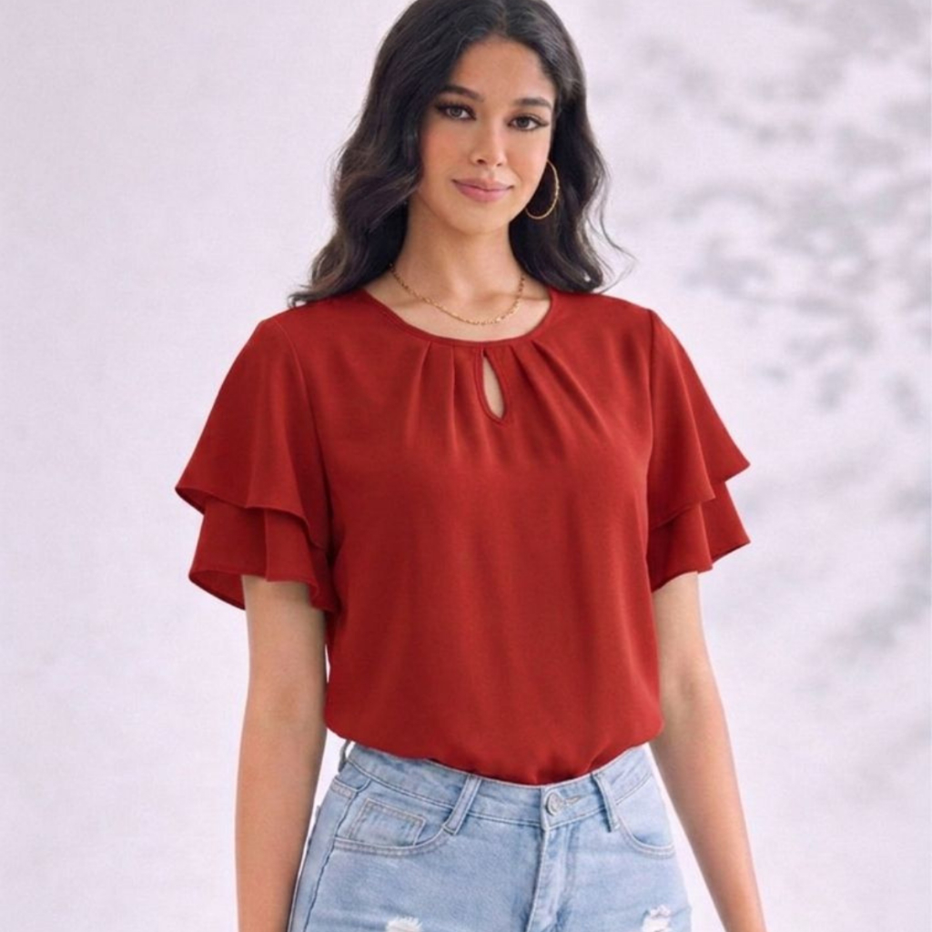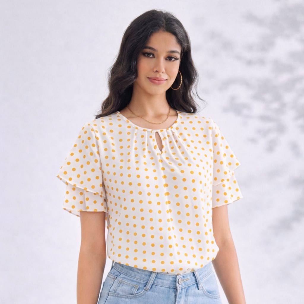 Blusa Feminina Estampada e Lisa em Crepe Leve – Modelos Variados com Poás e bolinha