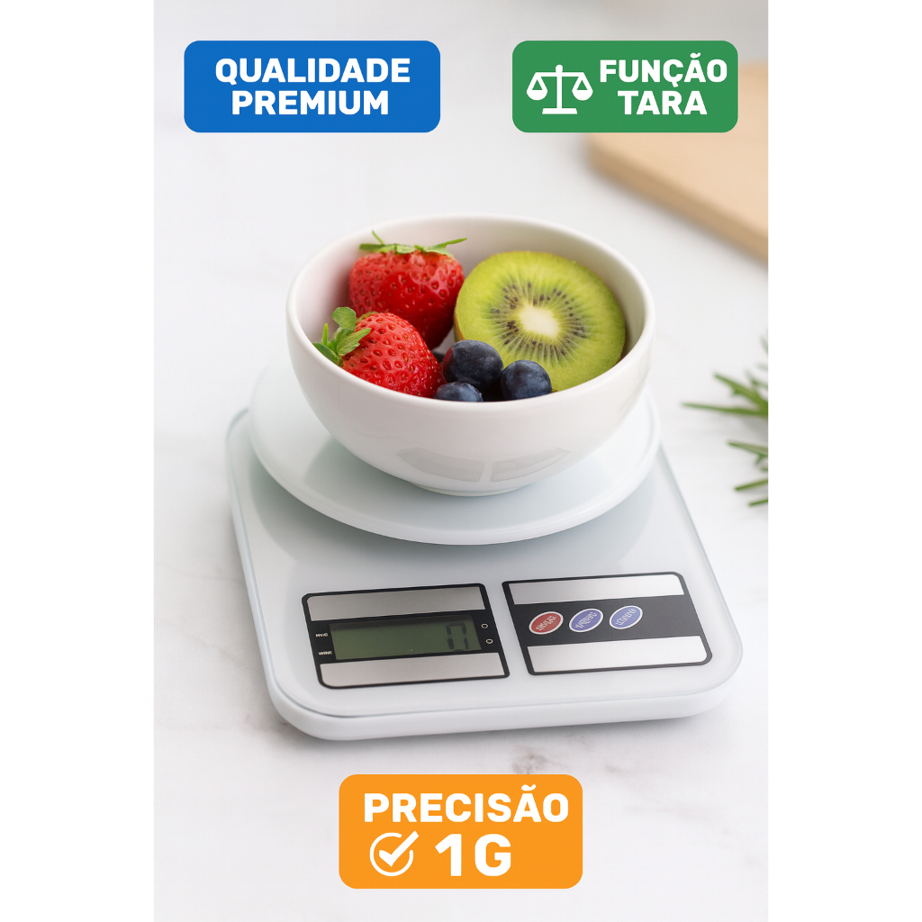 Balança Digital Cozinha 10kg Alta Precisão 1g Função TARA LCD Dieta
