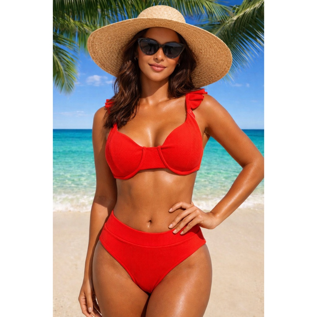 bikini feminina babado nas alças possui bojo e forro calcinha cintura alta moda tendencia 2025