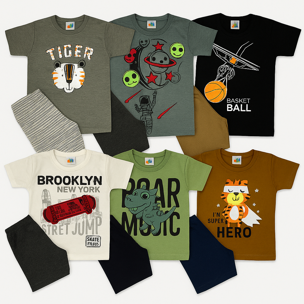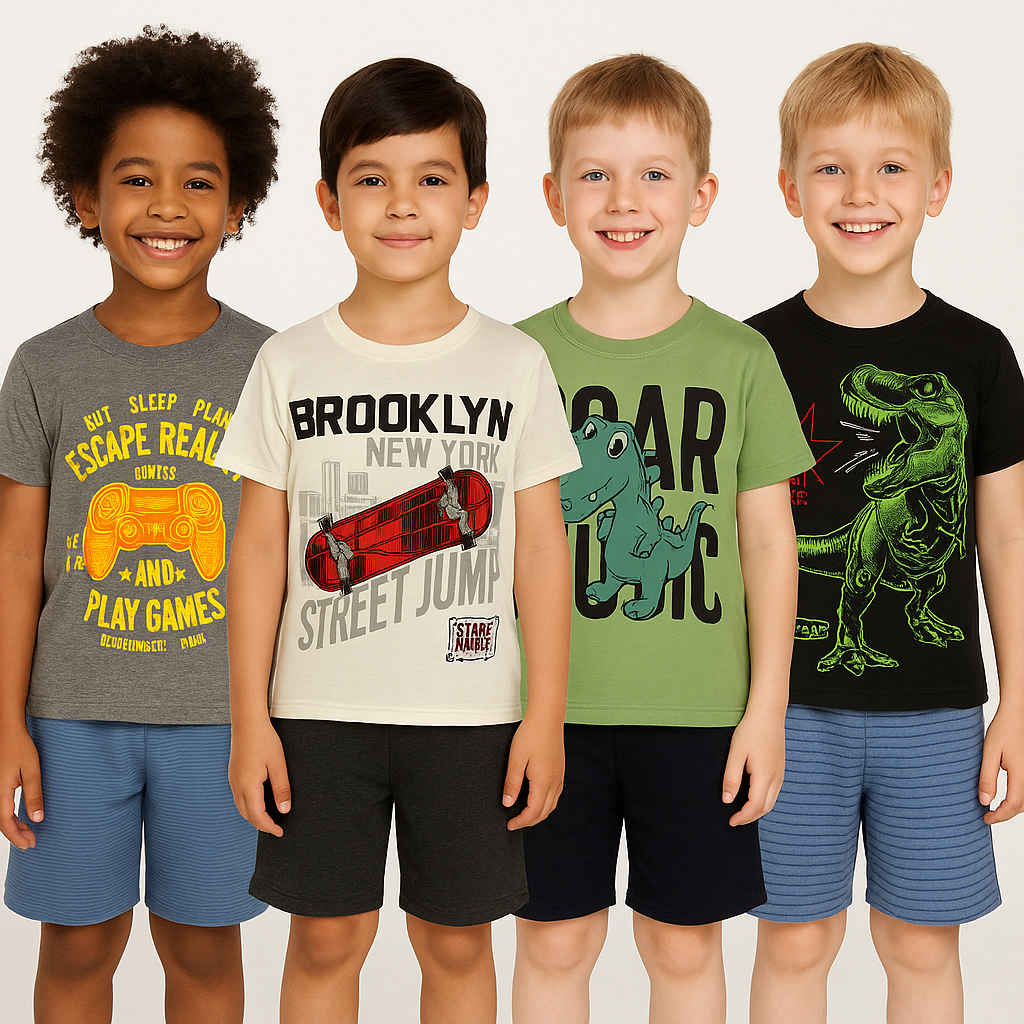 Kit 4 Peças Sortido Roupa Infantil Menino Verão 2 Camisas 2 Bermudas Tamanho 1 ao 10