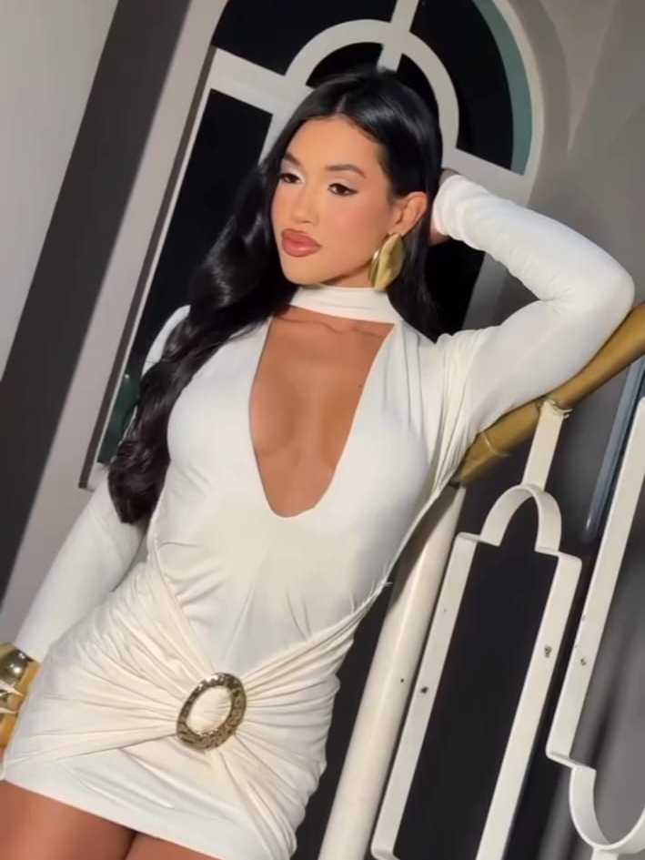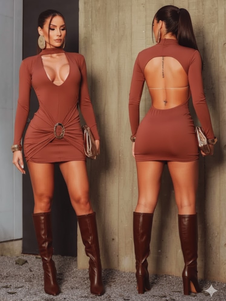 Vestido Feminino thatila Curto | Manga Longa | Decote e Recorte Costas | Festa & Balada