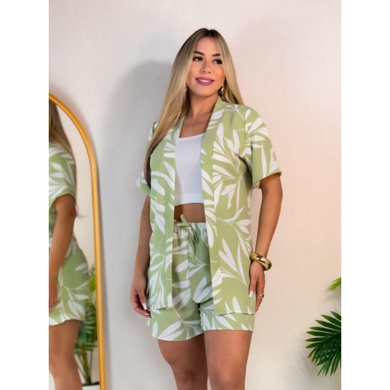 CONJUNTO KIMONO short e cardigan