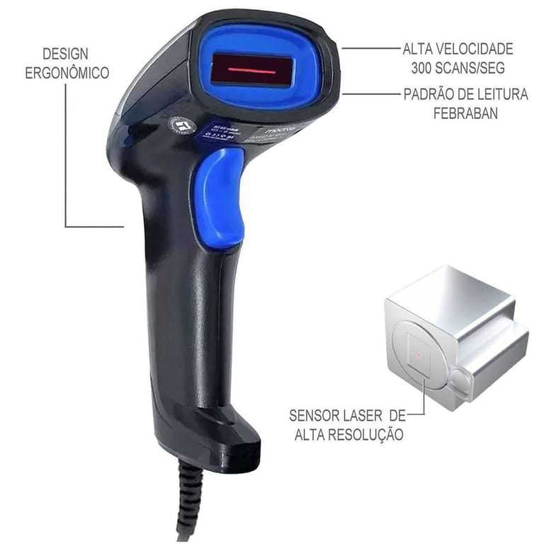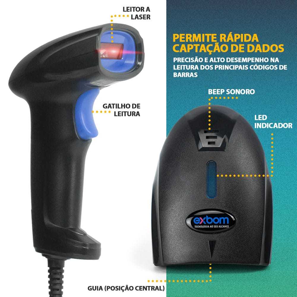 Leitor De Código De Barras USB Com Fio Exbom, Etiqueta de Produtos e Boletos Bancários