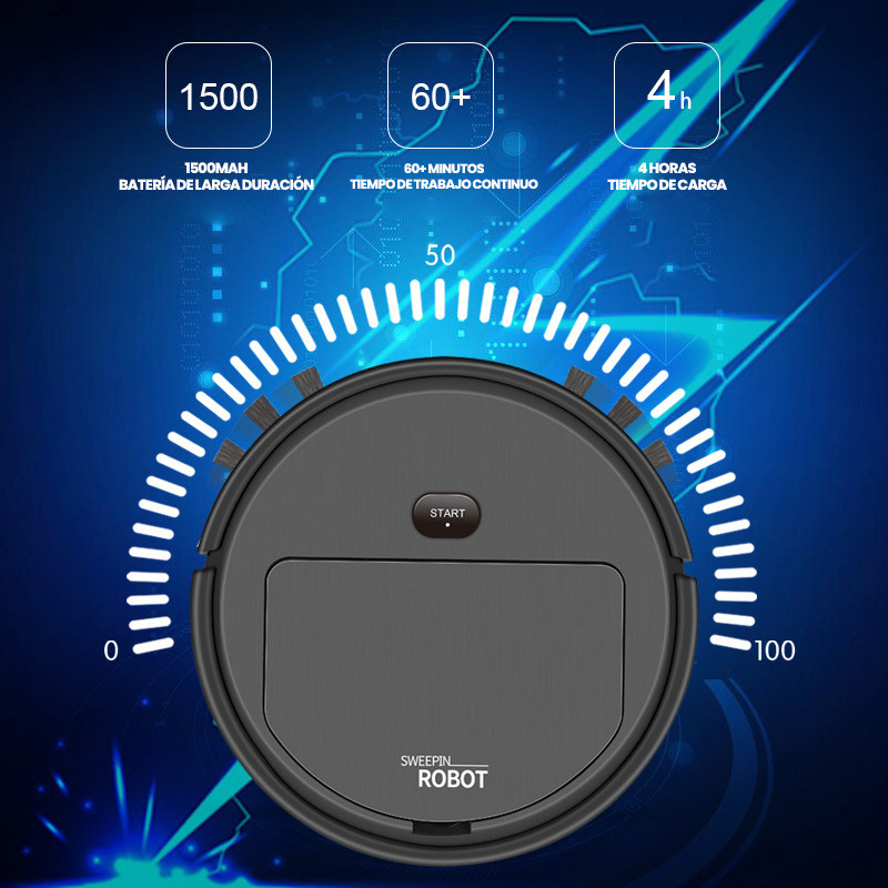 Aspirador Robô Grande e Redondo 1200PA, Limpeza Automática Inteligente para Casas Amplas