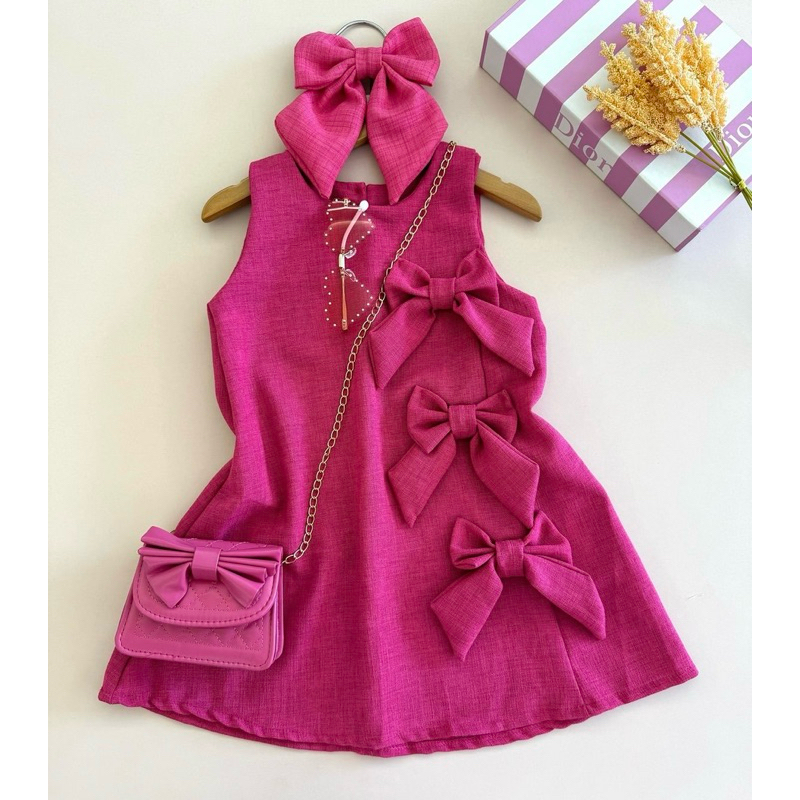 Vestido Linho Menina Com Laço Tendência Moda Blogueirinha Verão Multicolorido