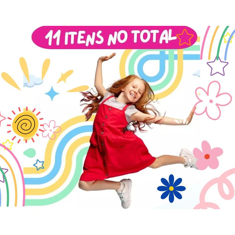 Kit Maquiagem infantil 11 itens no total Com Bolsinha Necessaire e Pincéis
