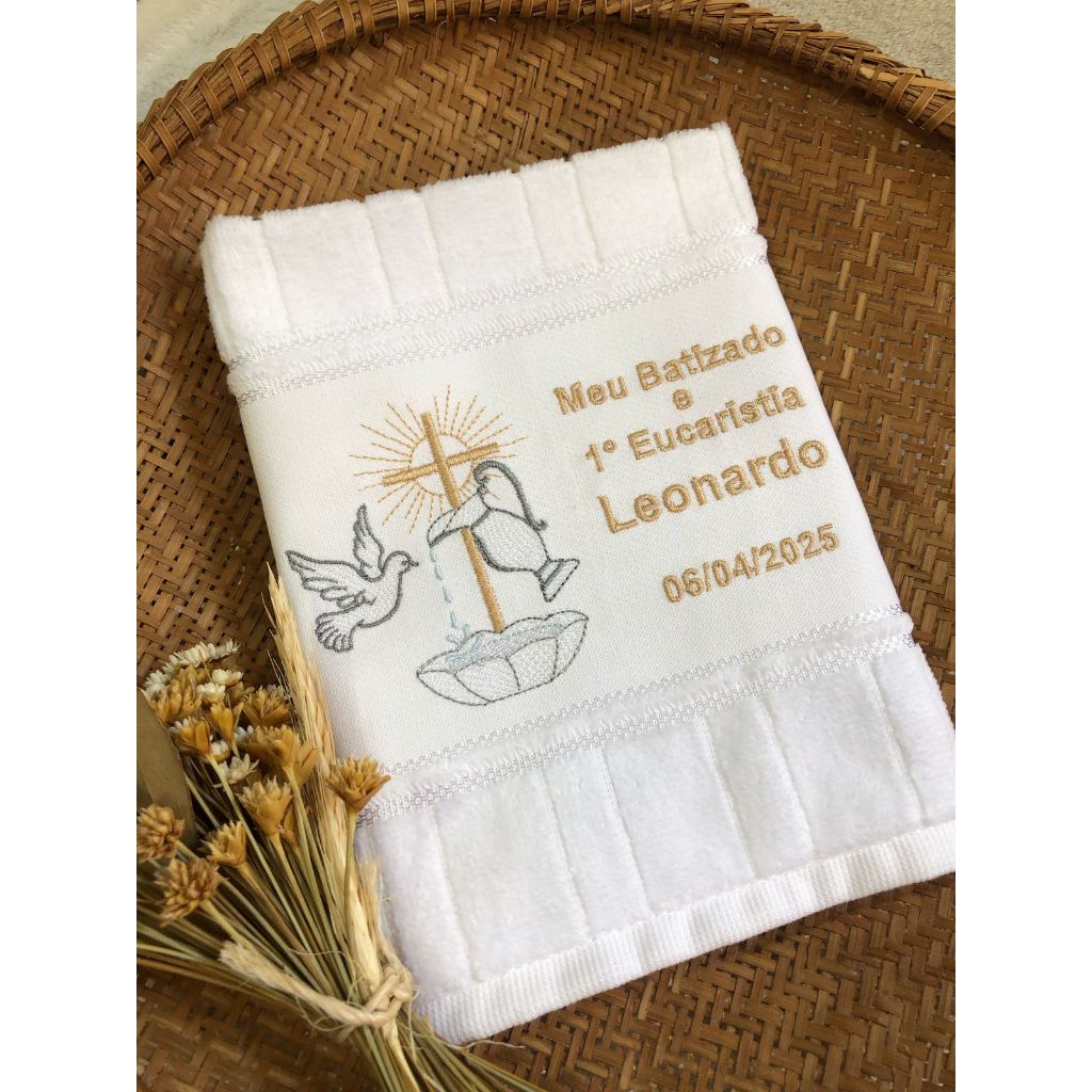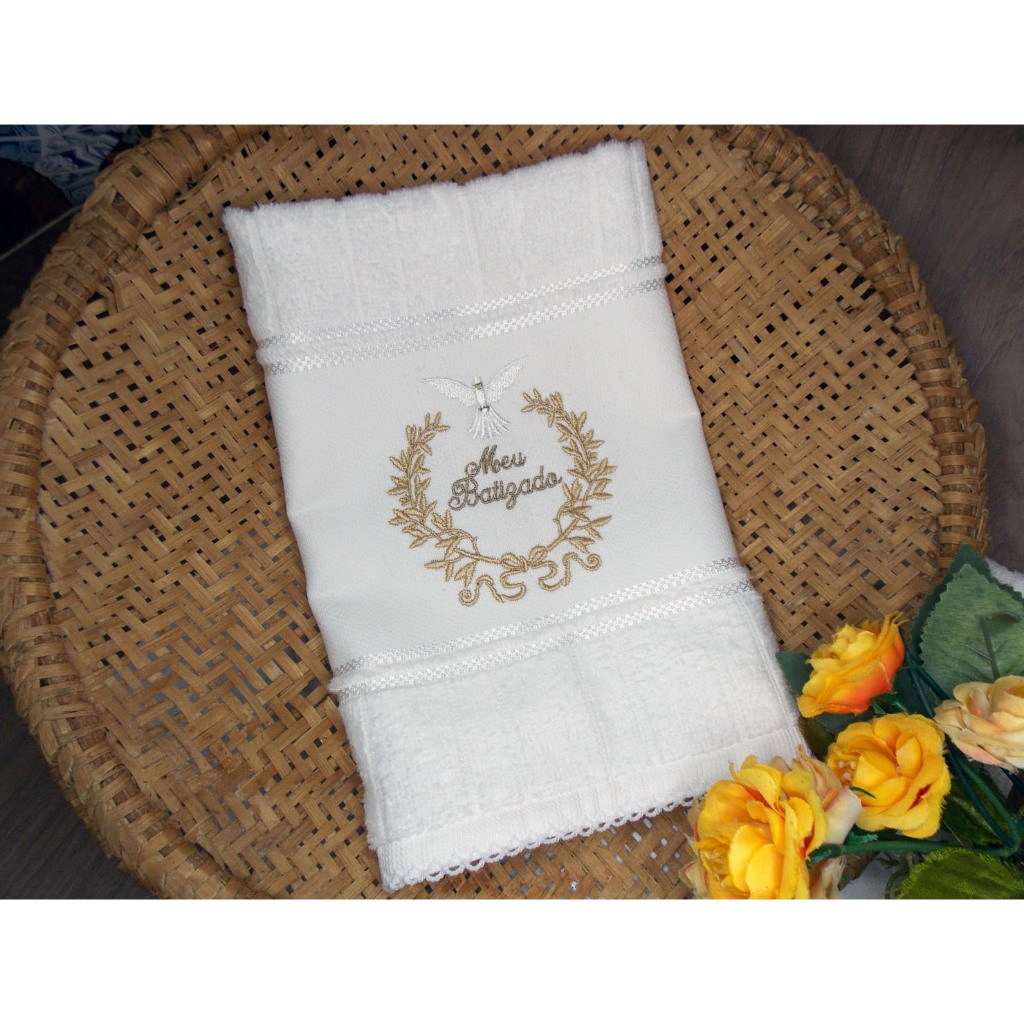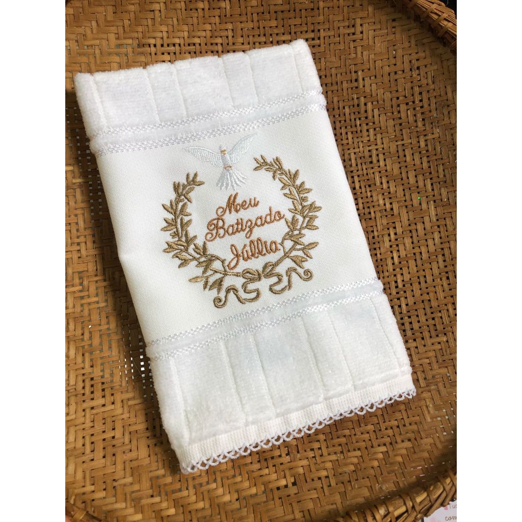 Toalha de Mão Dohler Artesanalle Bordada Meu Batizado Espirito Santo Religioso Picueta