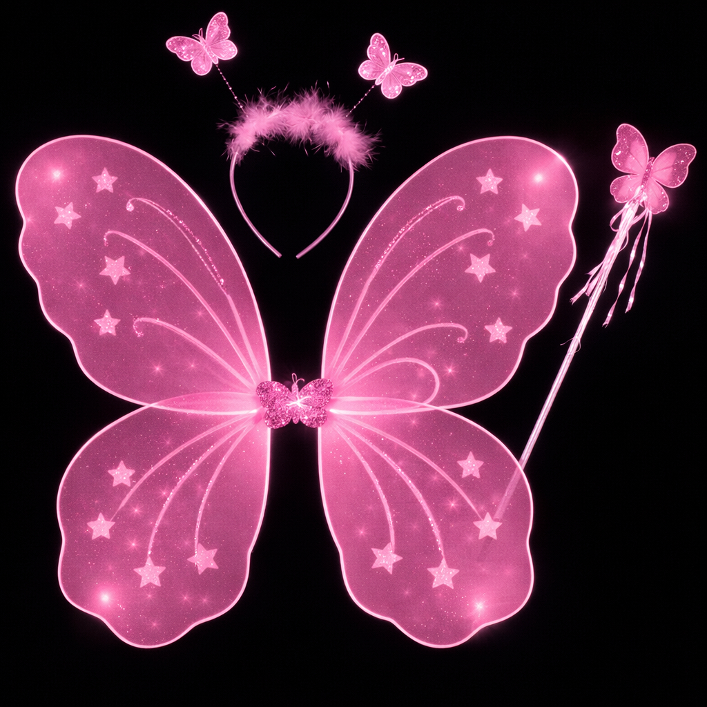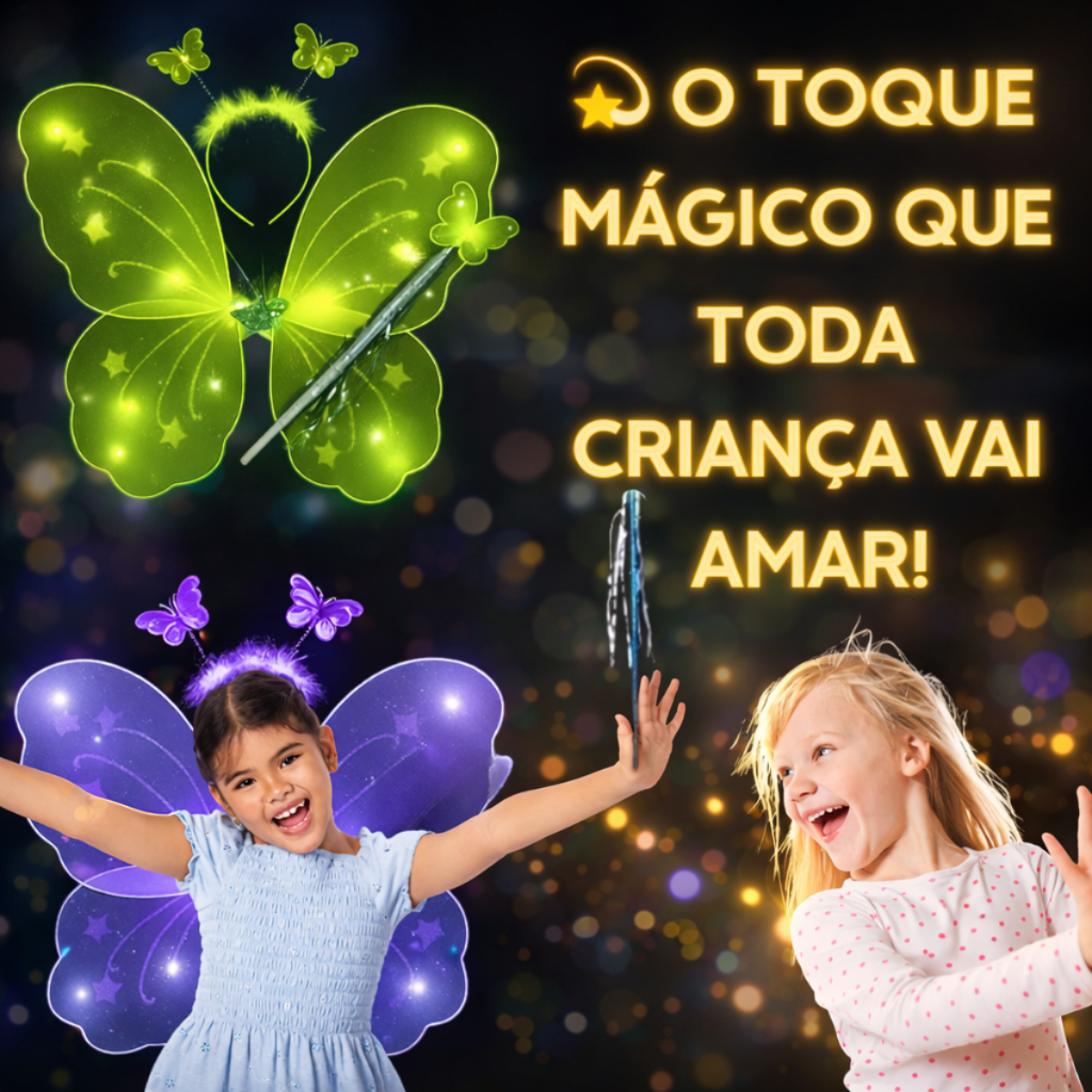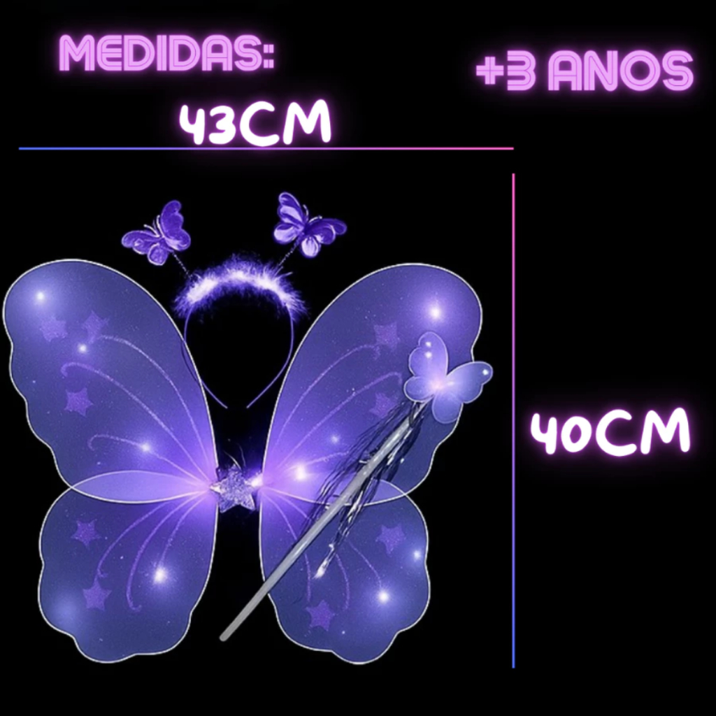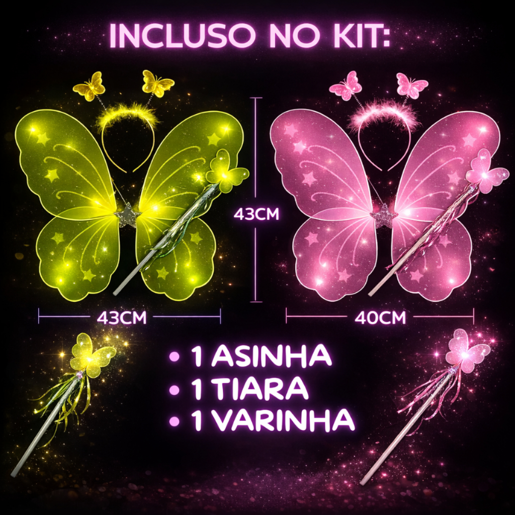 Kit Varinha e Tiara Fada Fadinha Borboleta C/ Led Criança Menina Festa Halloween Infantil