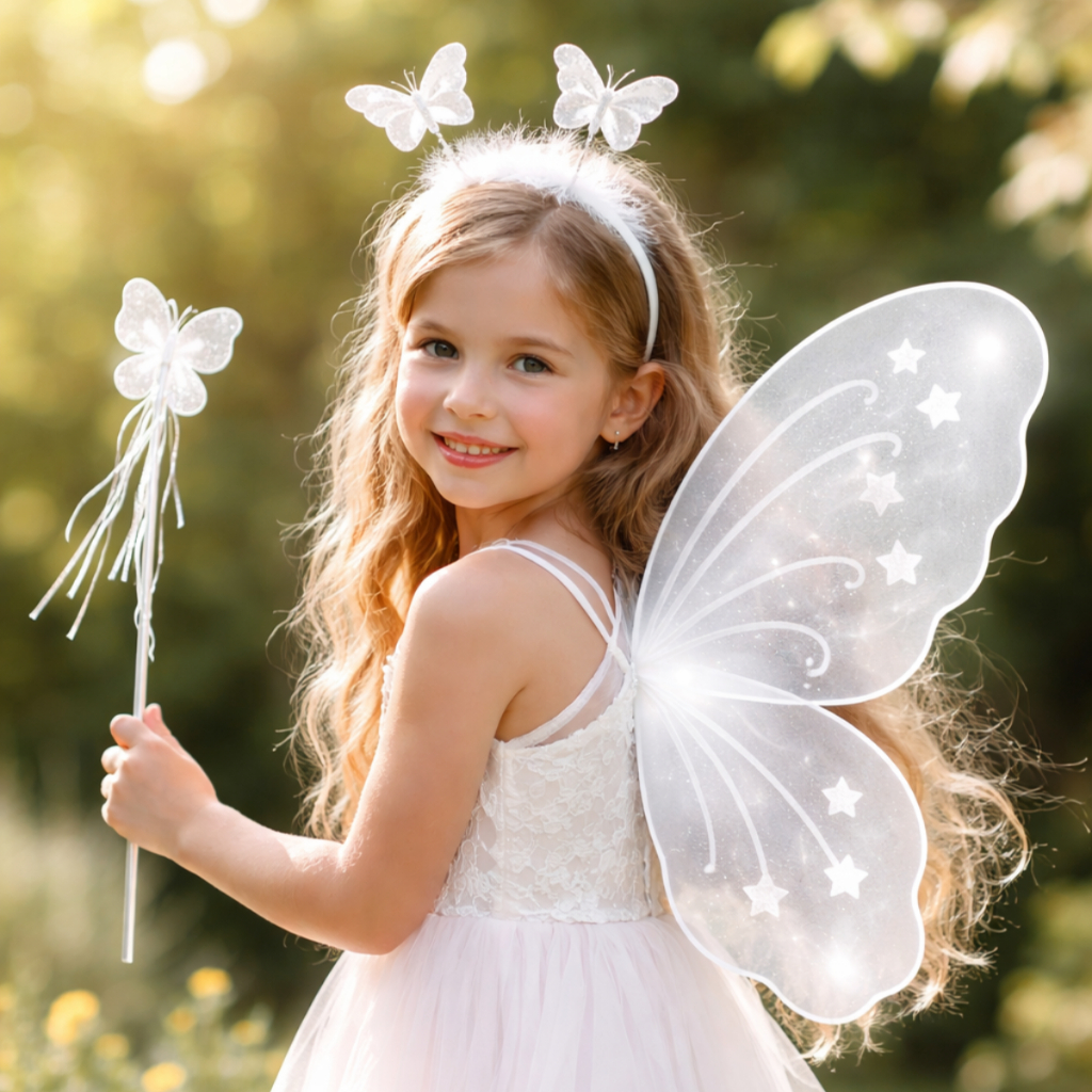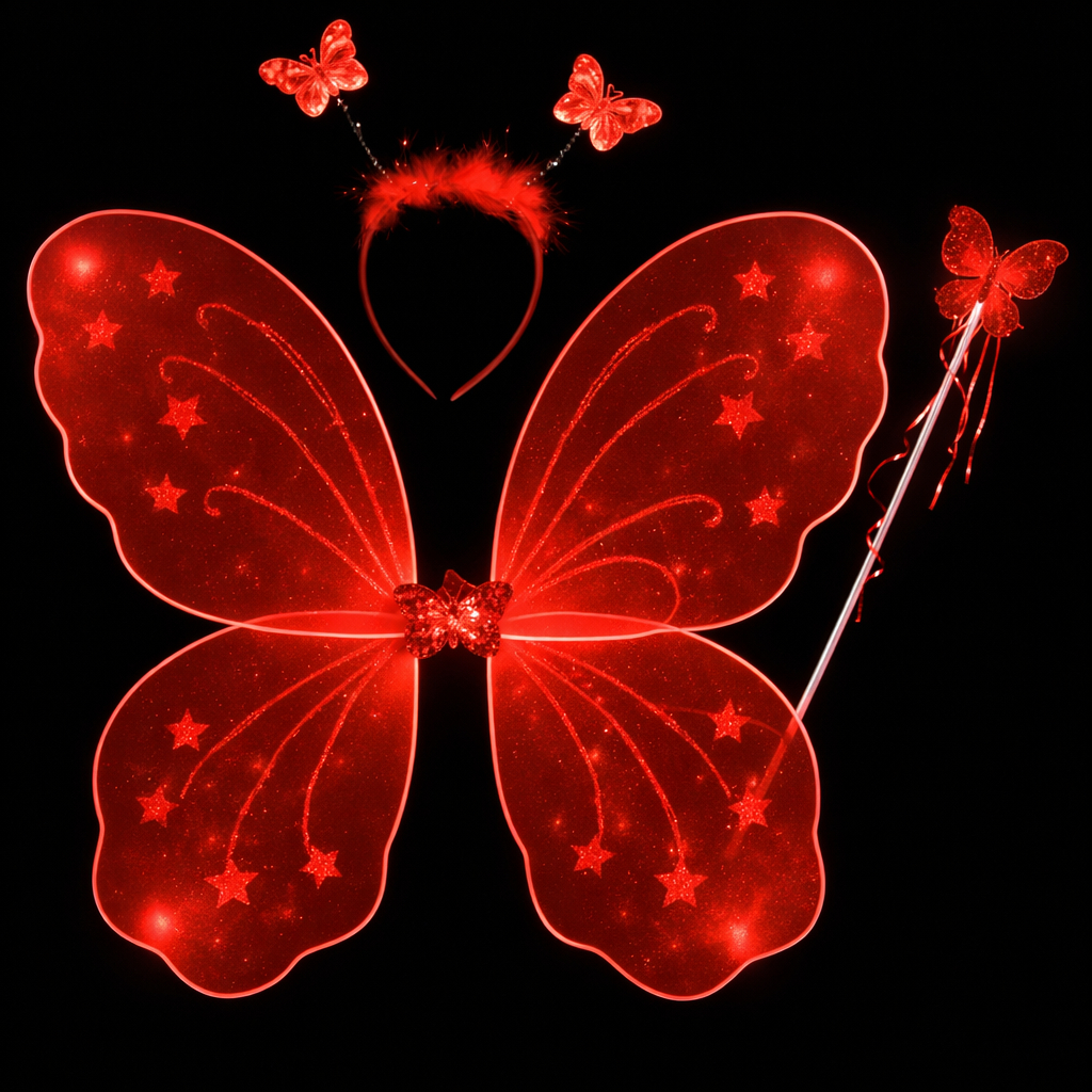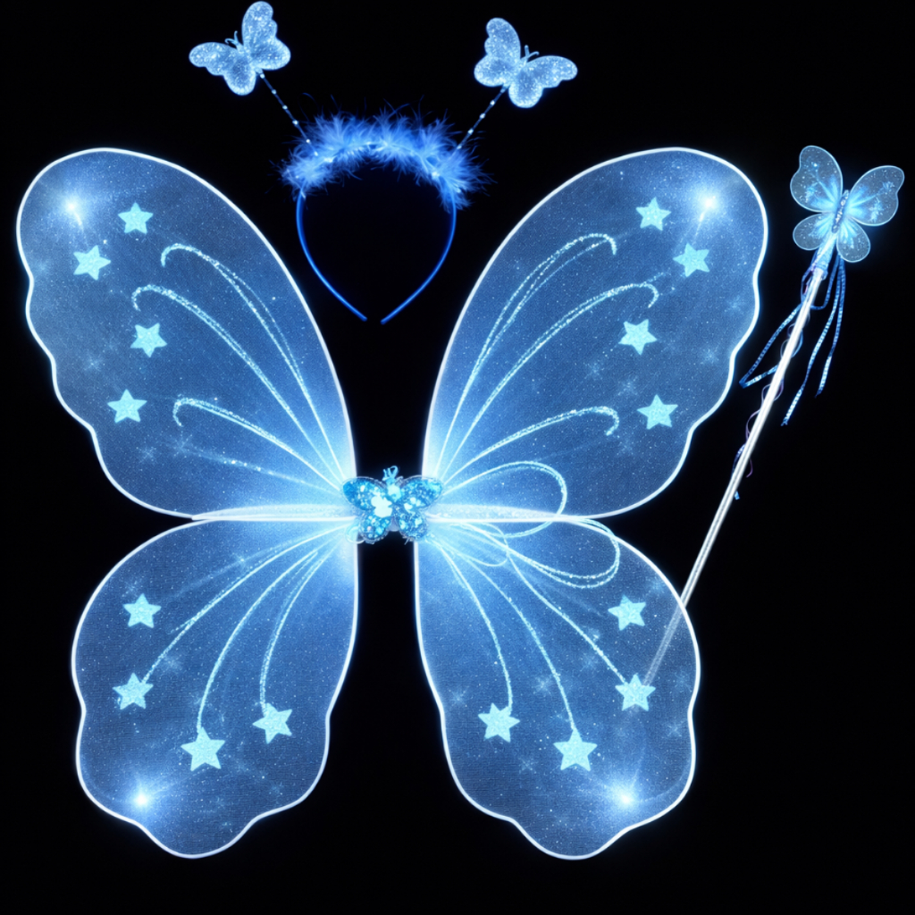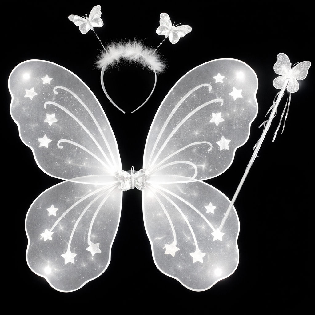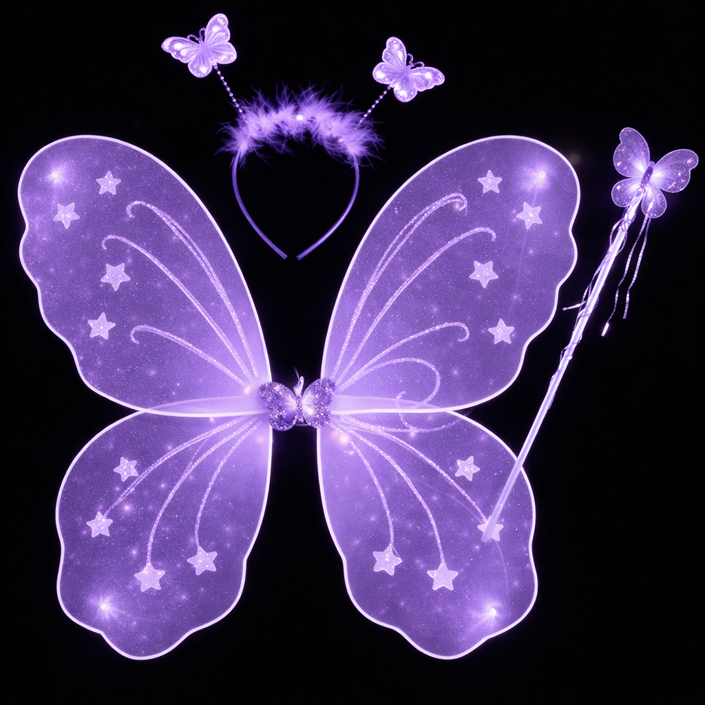 Kit Varinha e Tiara Fada Fadinha Borboleta C/ Led Criança Menina Festa Halloween Infantil