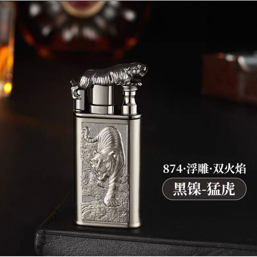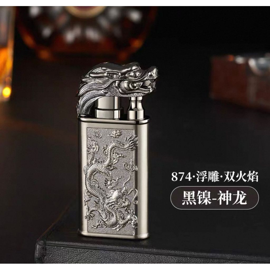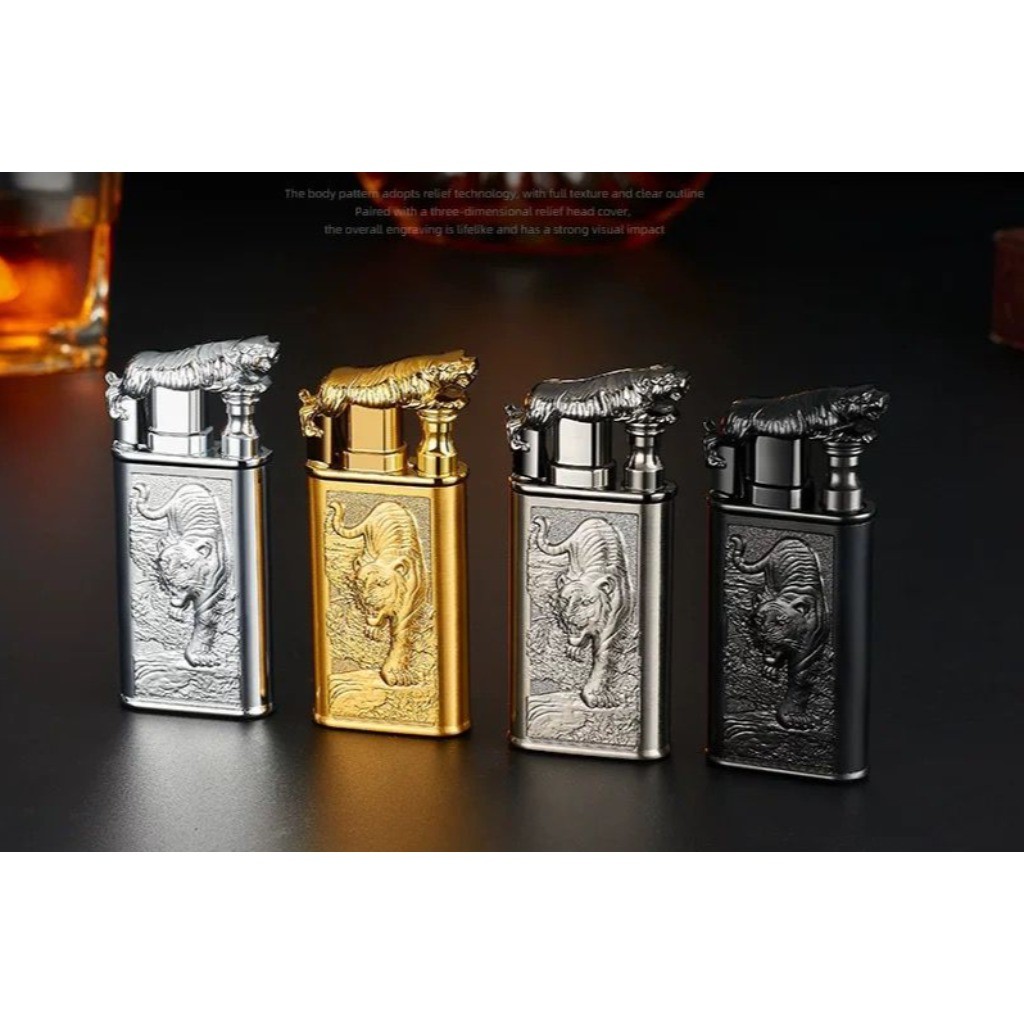 Isqueiro Chama Dupla Maçarico Estampada Recarregavel Gravada Dragão/Lobo/Tigre Diferente Luxo Presente
