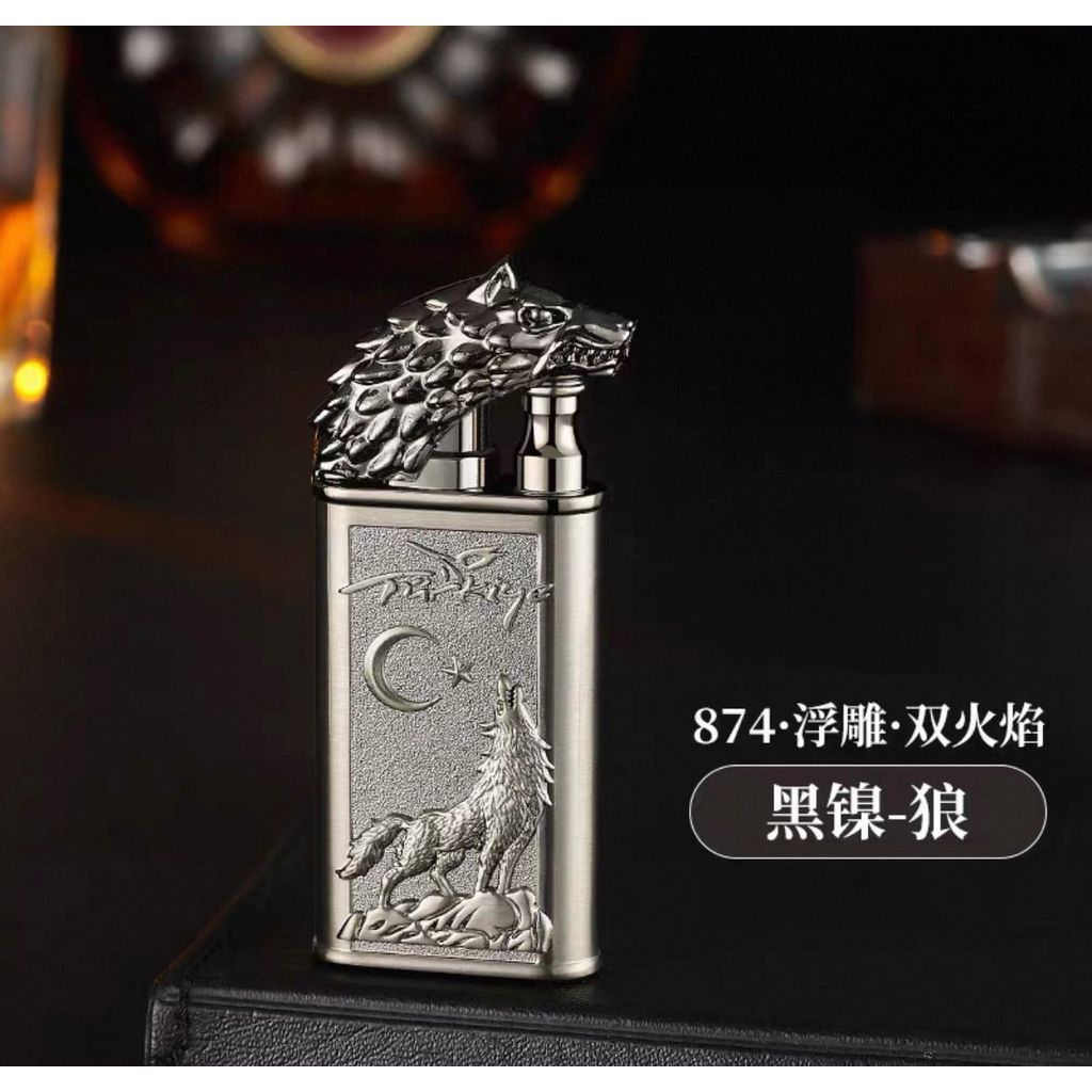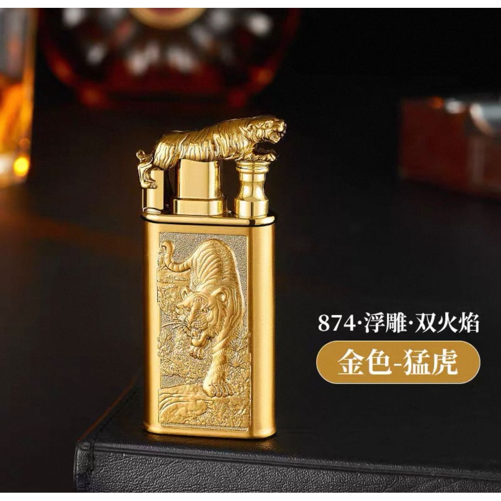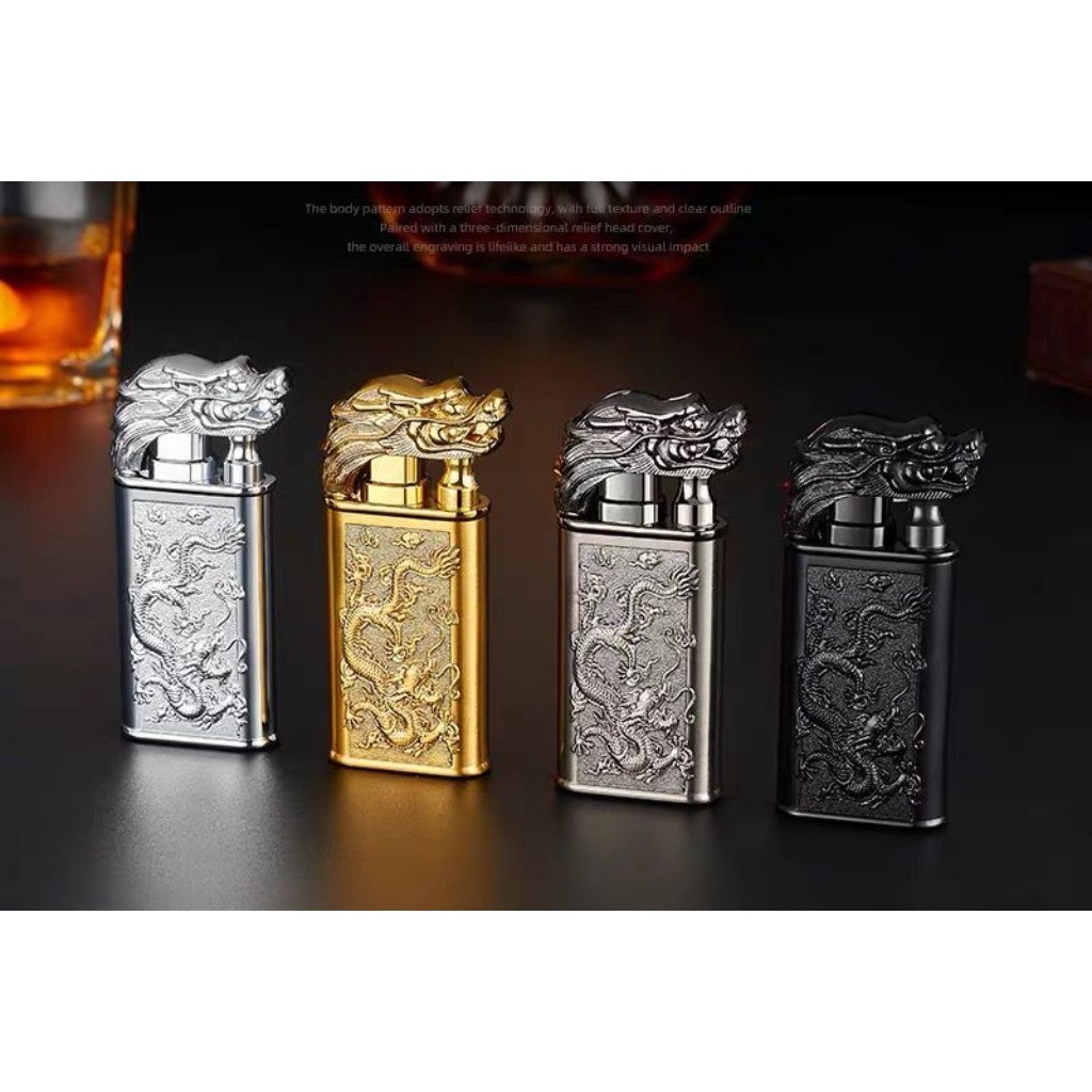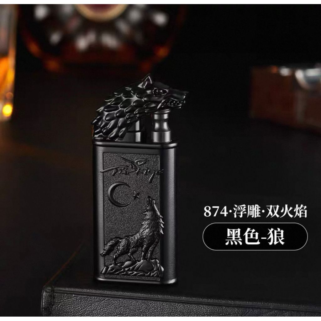 Isqueiro Chama Dupla Maçarico Estampada Recarregavel Gravada Dragão/Lobo/Tigre Diferente Luxo Presente