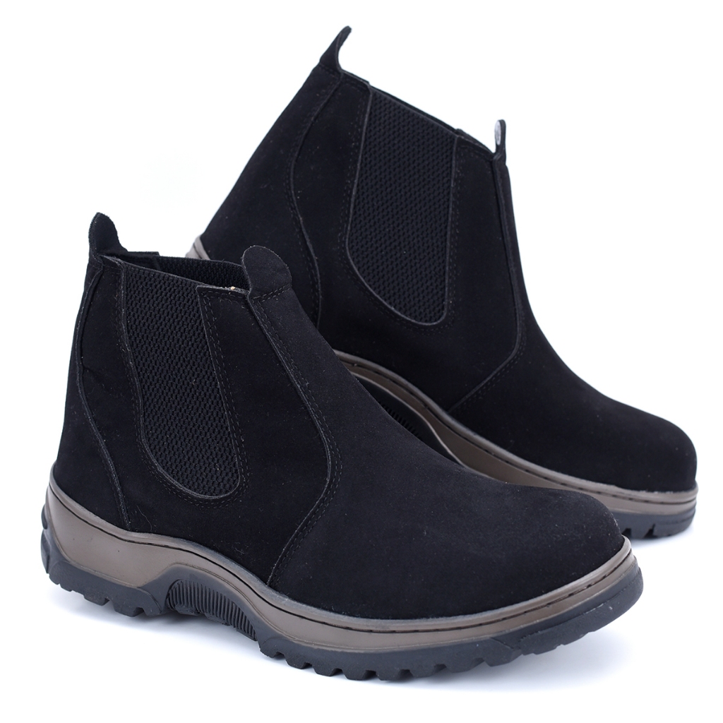 Bota Botina Masculina Preta Camurça Ecológica Sola de Borracha Trabalho Rodeio Country Envio Imediato