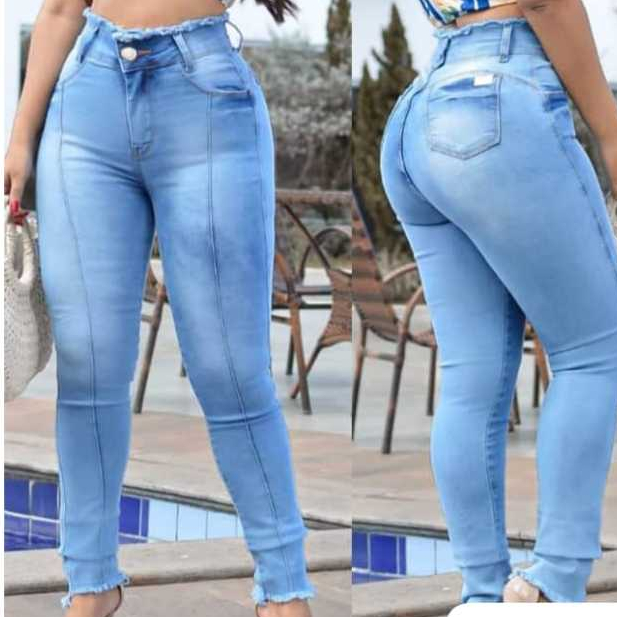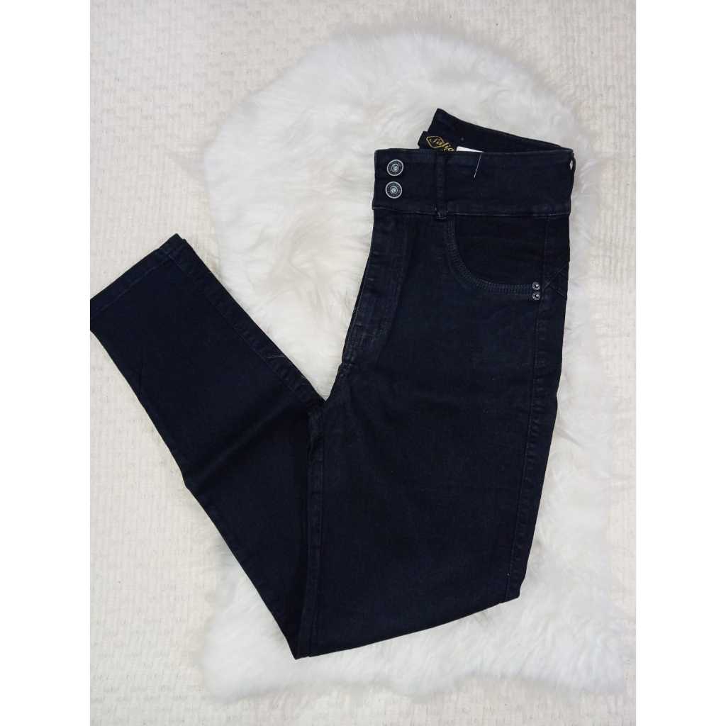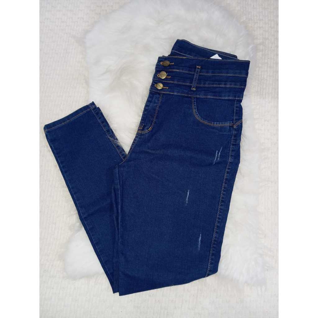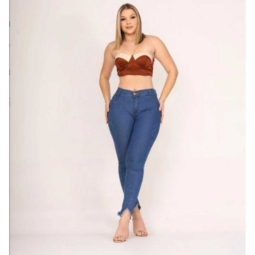 Calça jeans feminina cintura média/alta com lycra levanta bumbum skinny/flare/boca de sino