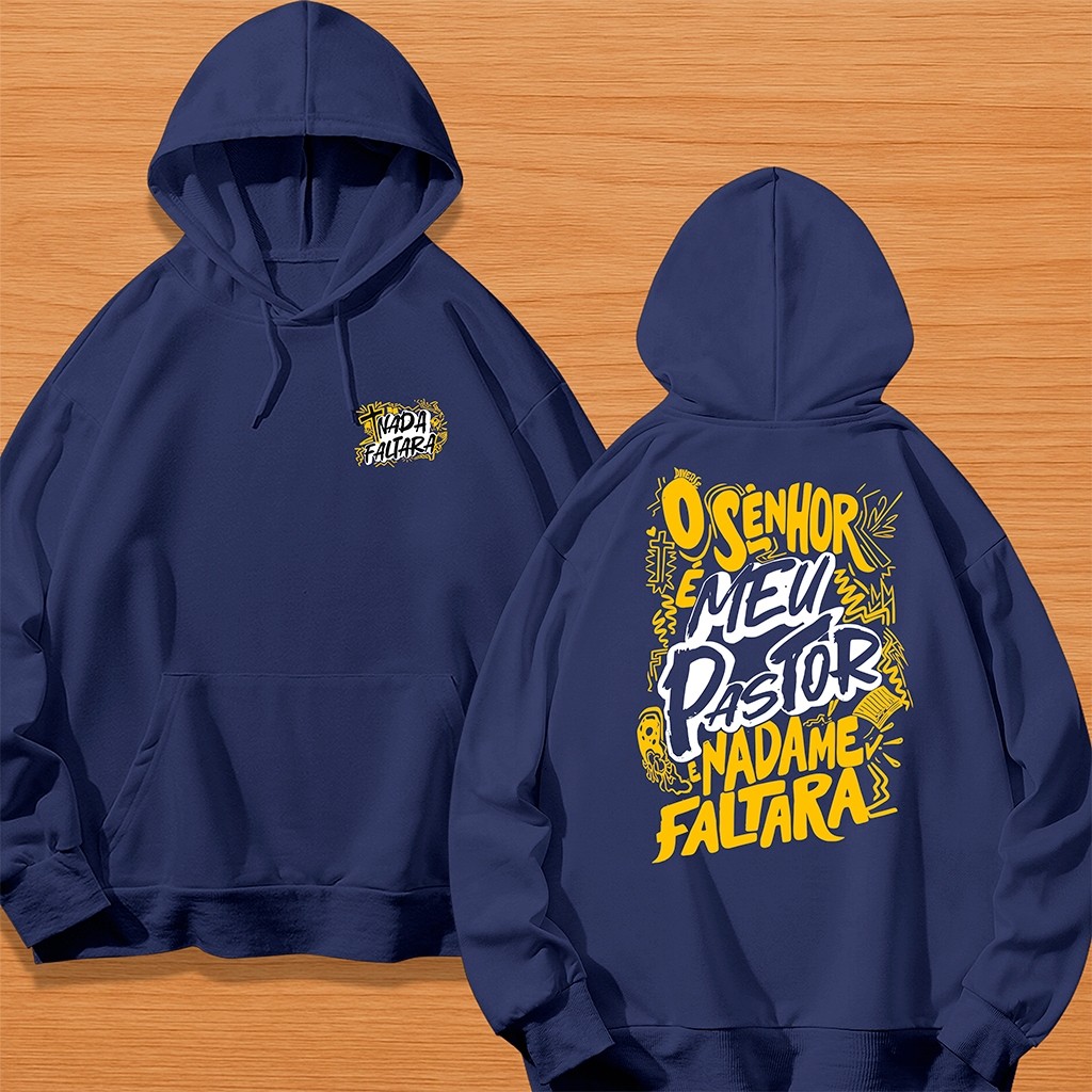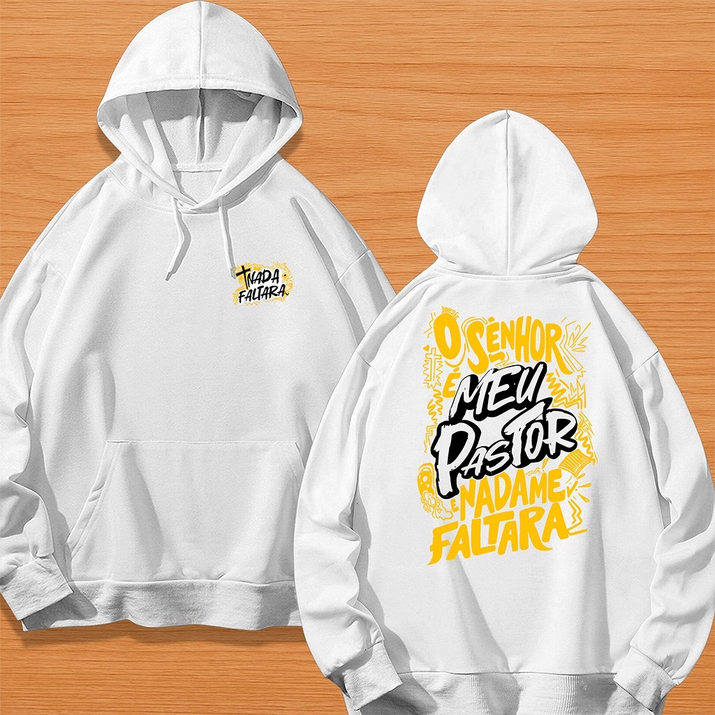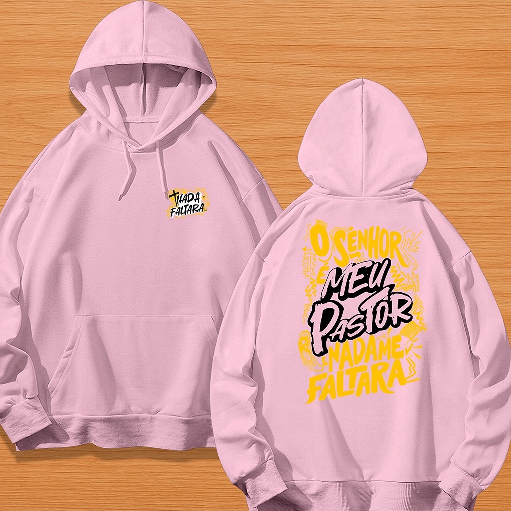 BLUSA DE FRIO MOLETOM CANGURU UNISSEX STREETWEAR FRASE O SENHOR E MEU PASTOR E NADA ME FALTARÁ