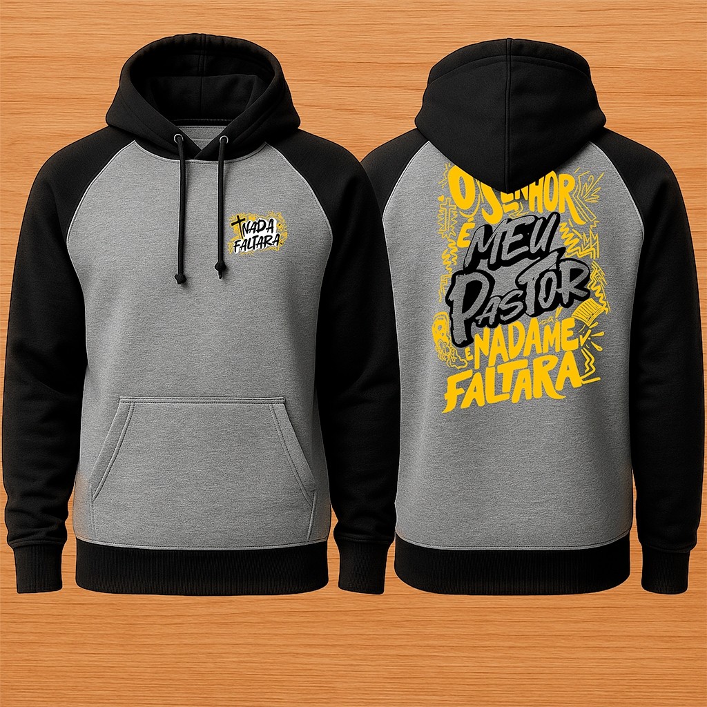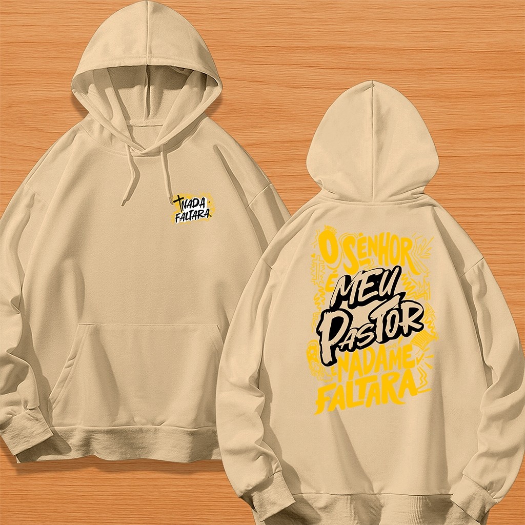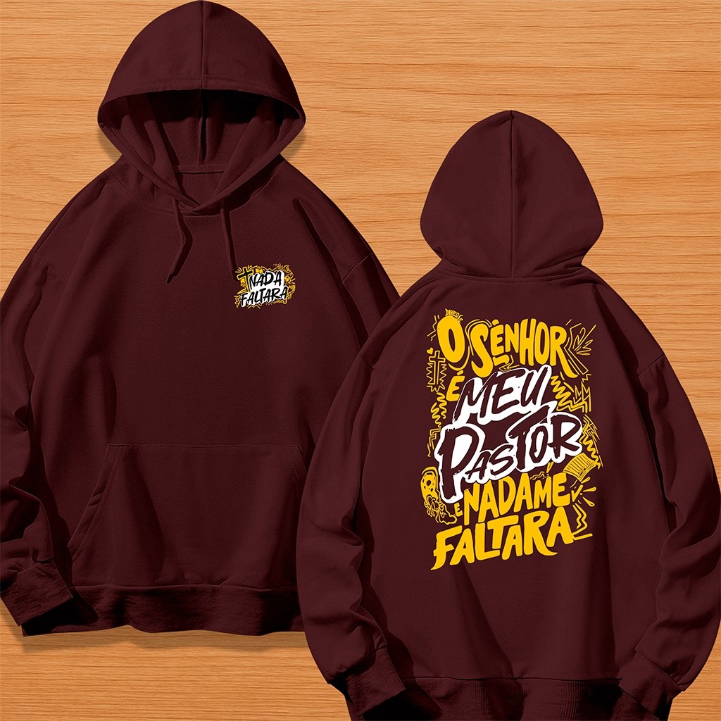 BLUSA DE FRIO MOLETOM CANGURU UNISSEX STREETWEAR FRASE O SENHOR E MEU PASTOR E NADA ME FALTARÁ