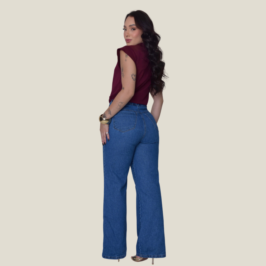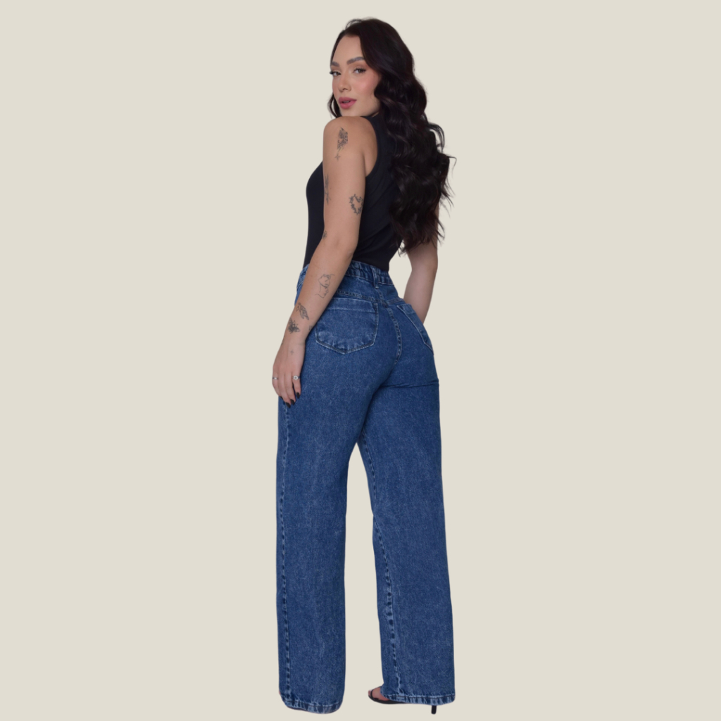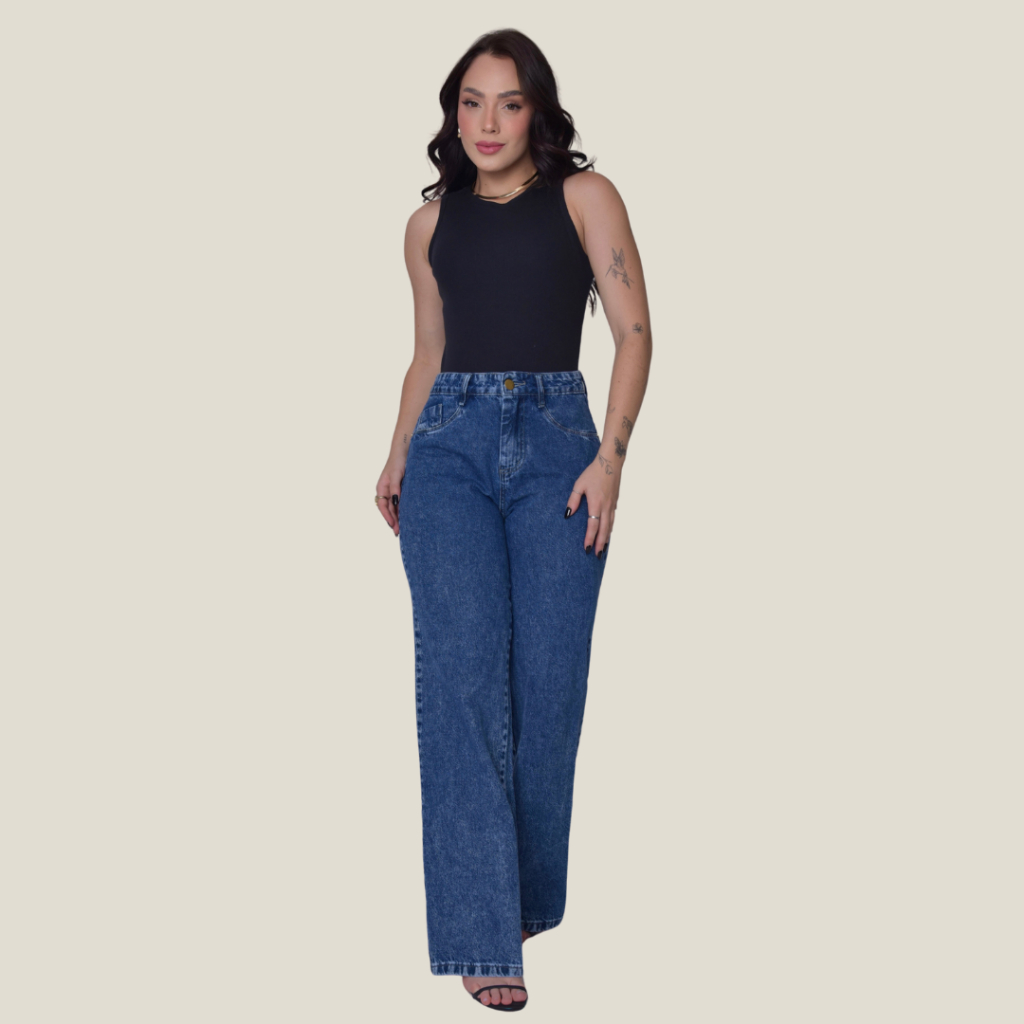 Calça Jeans Feminina Pantalona Wide Leg 100% Algodão Boca Larga Tecido Grosso Premium