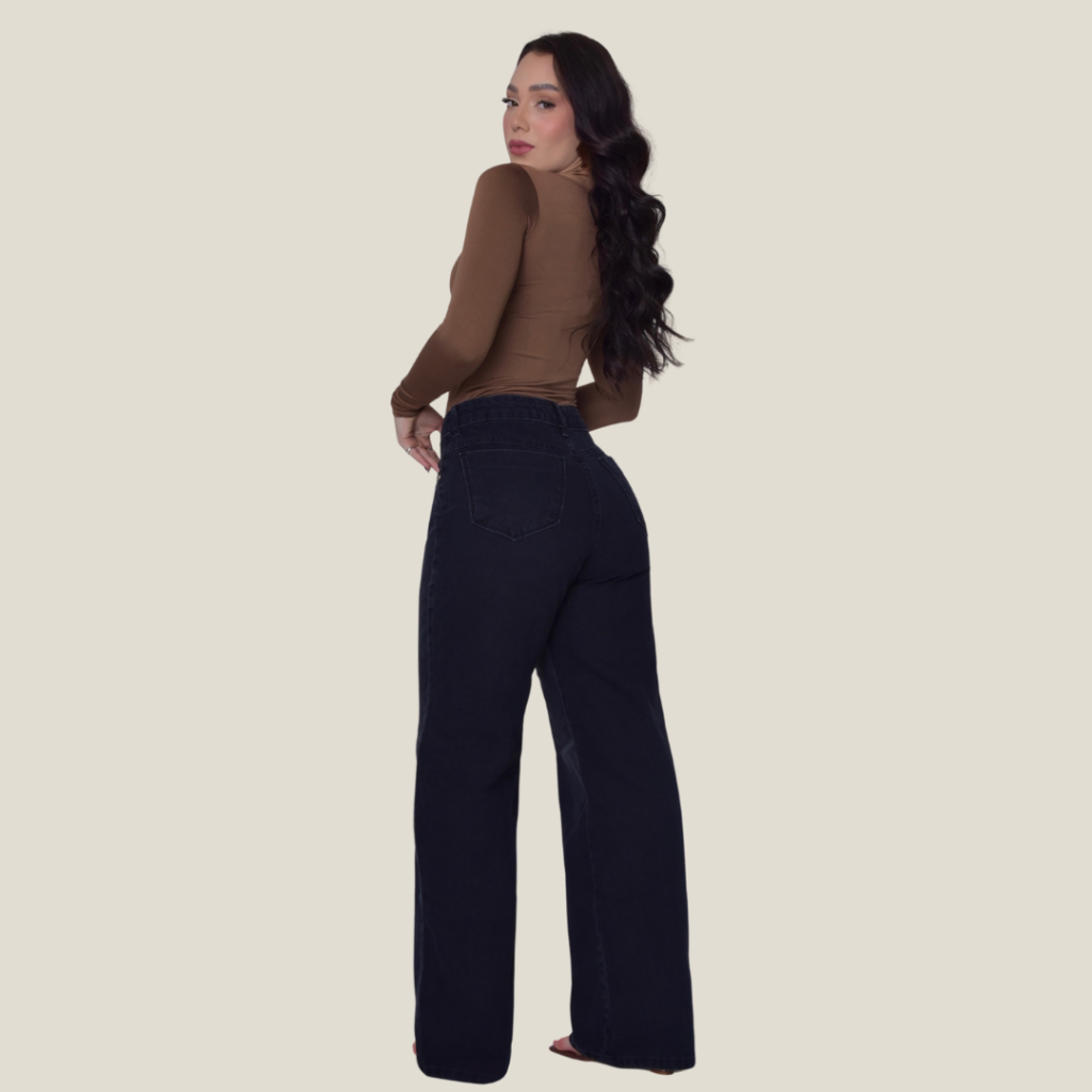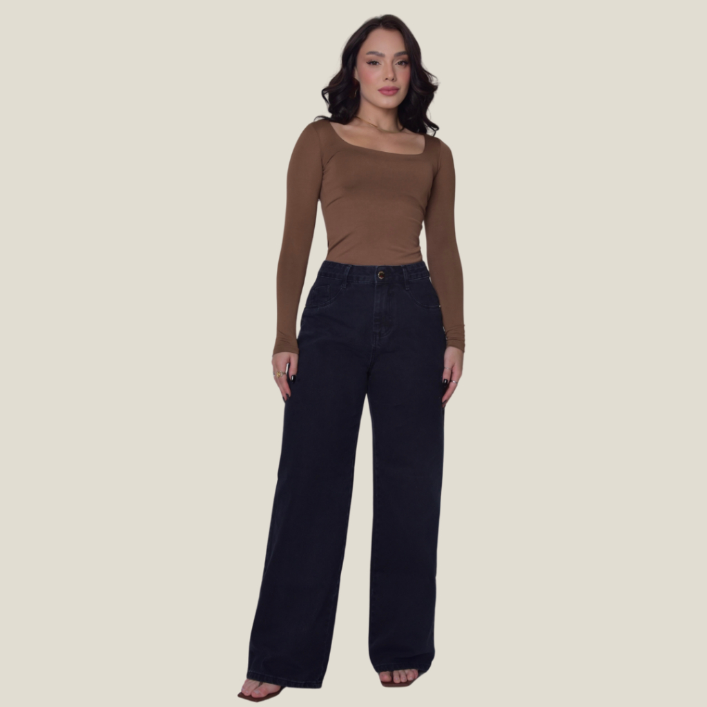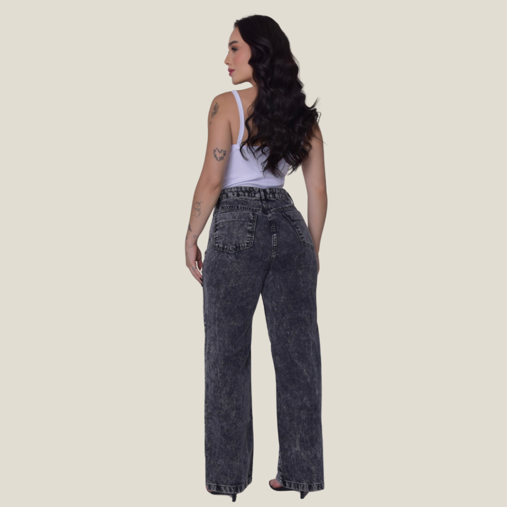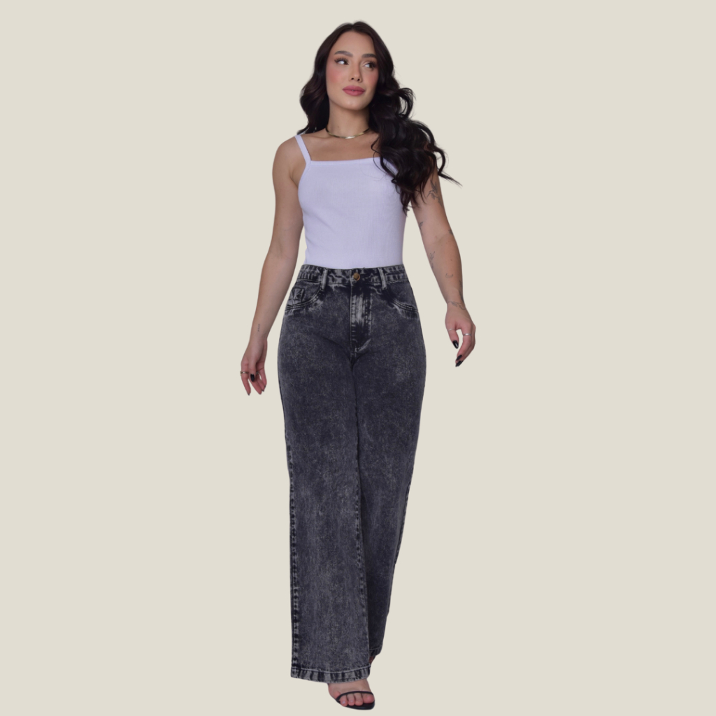 Calça Jeans Feminina Pantalona Wide Leg 100% Algodão Boca Larga Tecido Grosso Premium