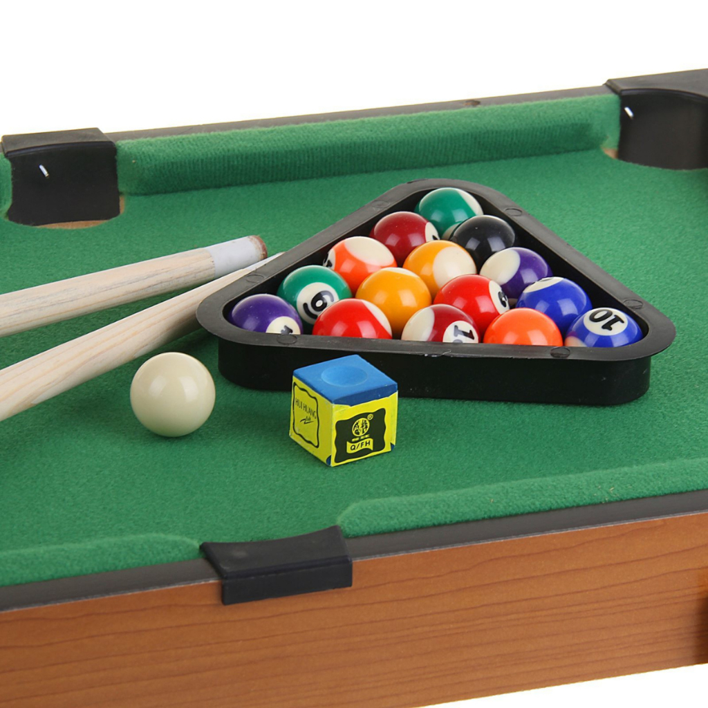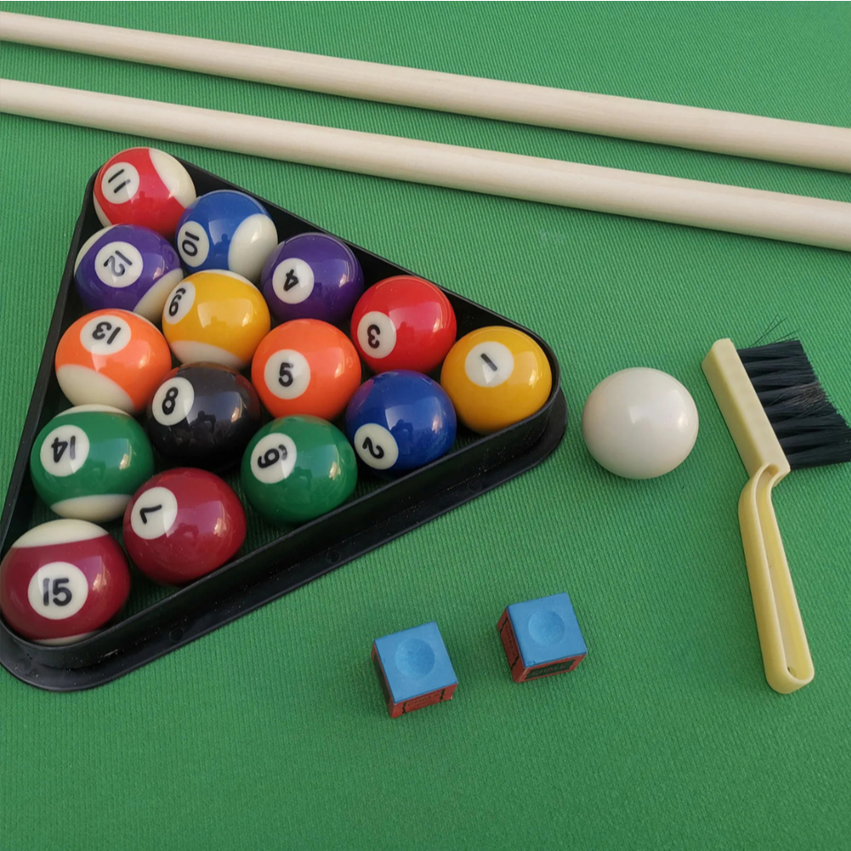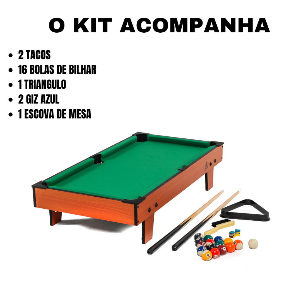 Kit Mesa de Jogo de bilhar Grande completa com tacos, bolas, giz, triangulo e escova