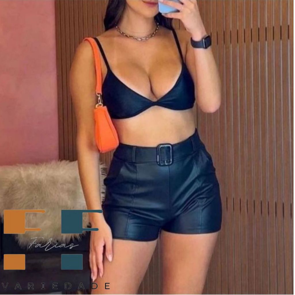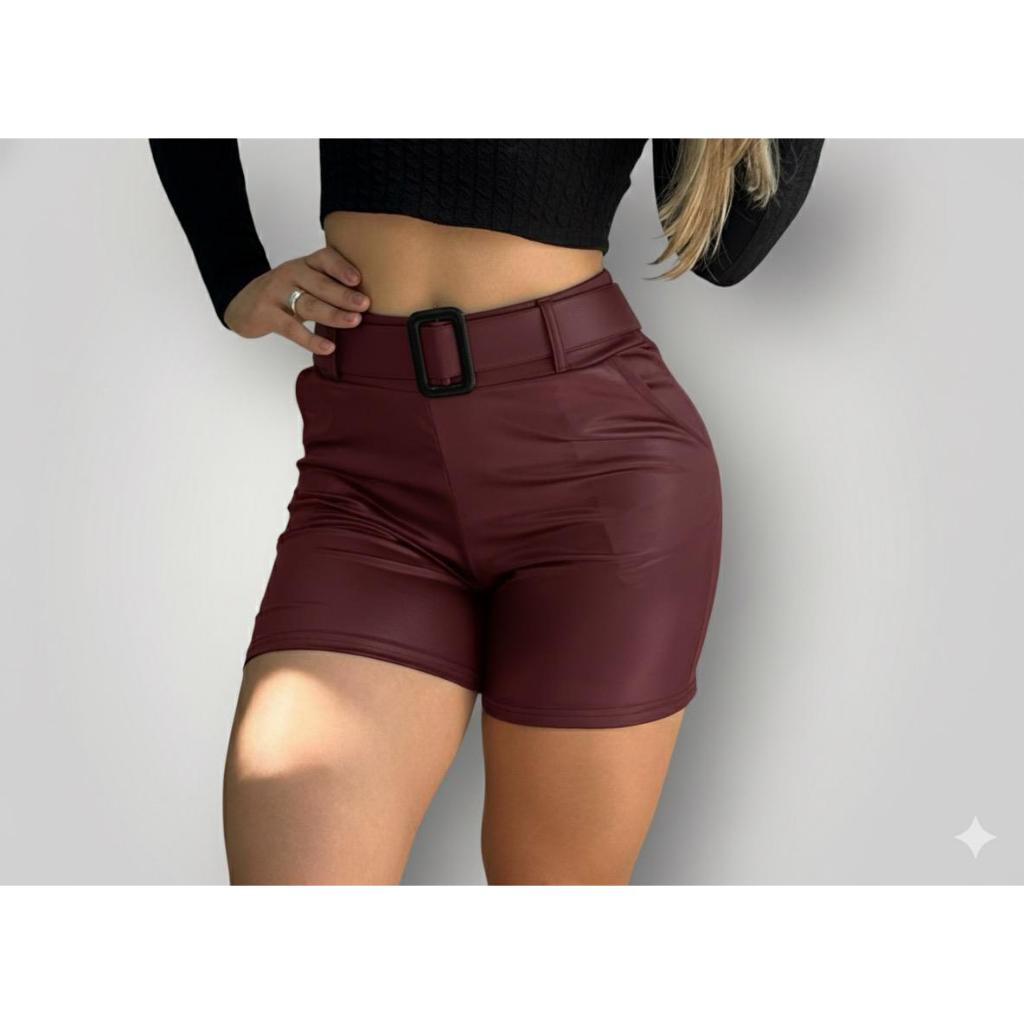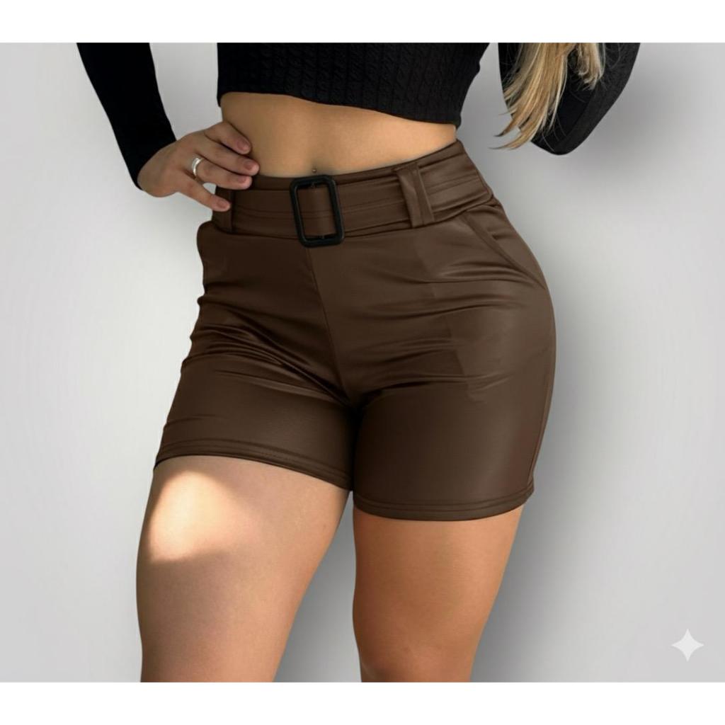 Short/ Shorts Feminino De Couro Fake Moda Verão Bolso Funcional Cintura Alta - PROMOÇÃO IMPERDIVEL