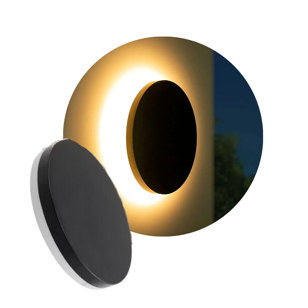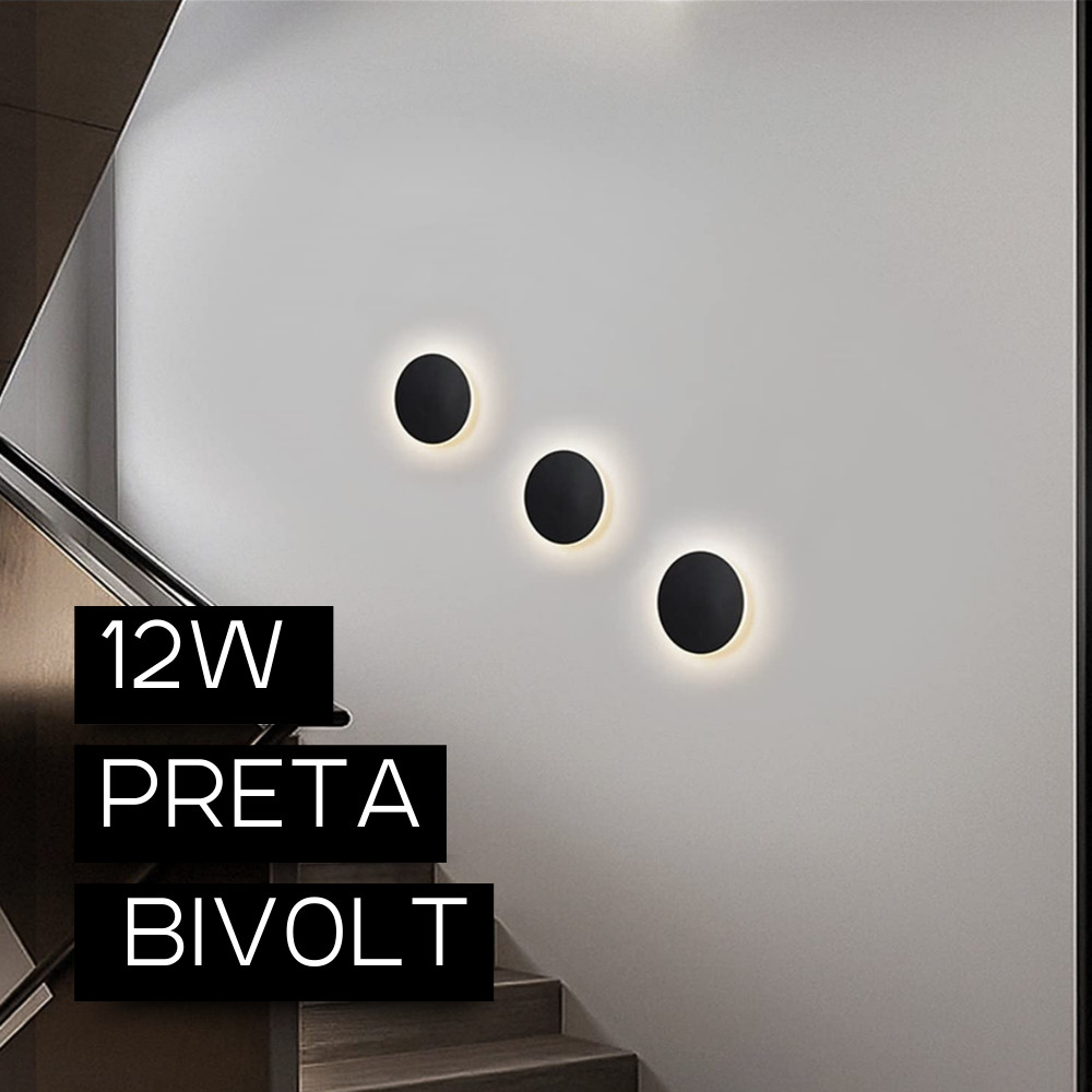 Luminária Arandela Parede Led Eclipse Preta 3000K Quente 12W Pix Bivolt Redondo Círculo Uso Interno Externo Iluminação
