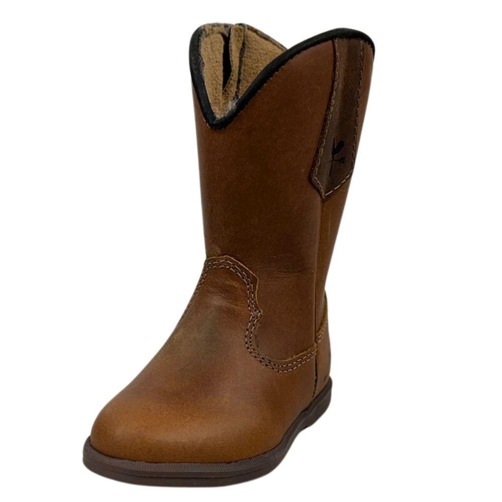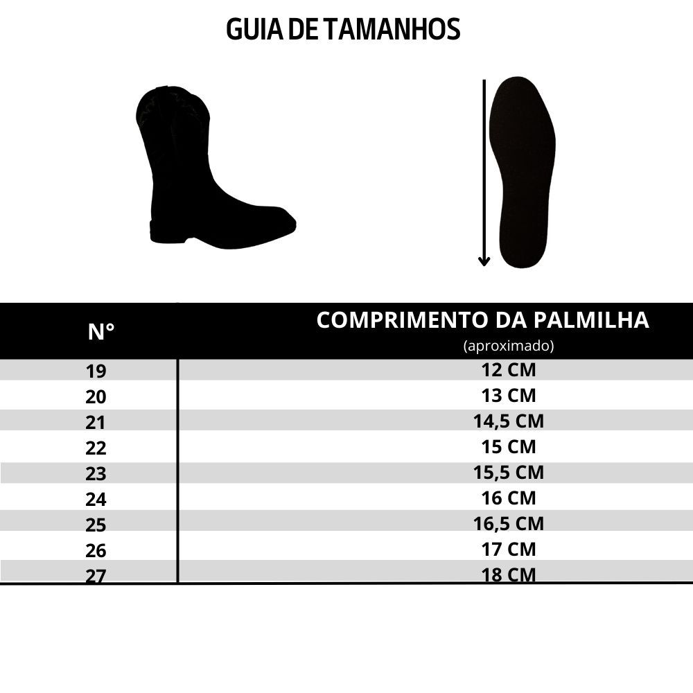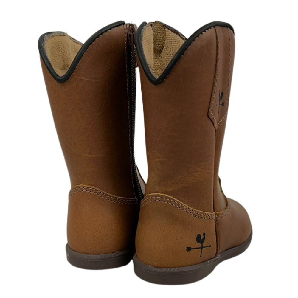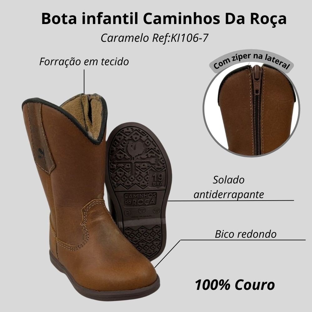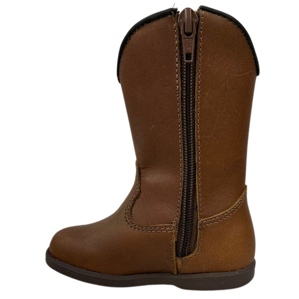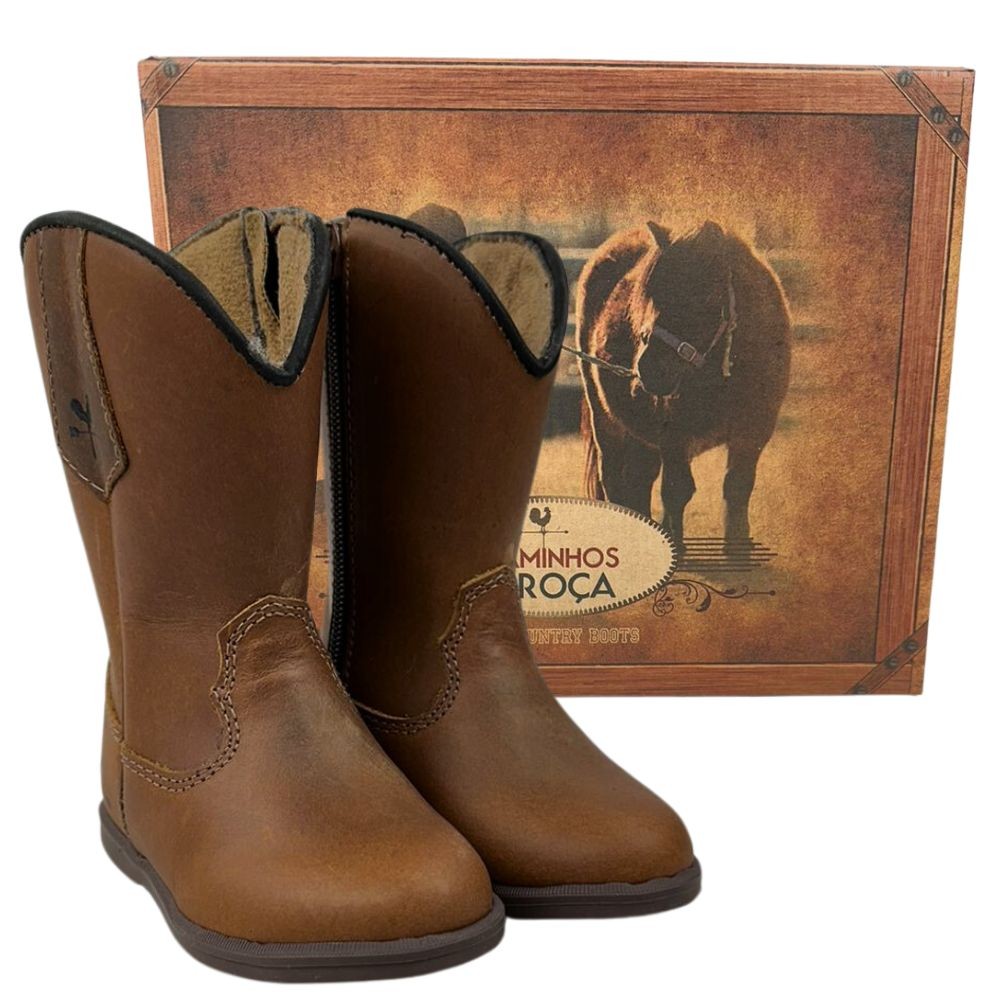 Bota Texana De Criança Com Com Zíper Bico Redondo Em Couro