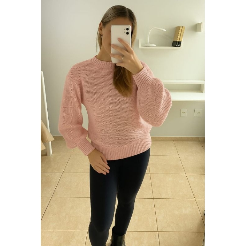 BLUSA FEMININA INVERNO TRICÔ MANGA LONGA BALÃO MODERNA LUXO DESPOJADA FRIO SUÉTER QUENTINHA