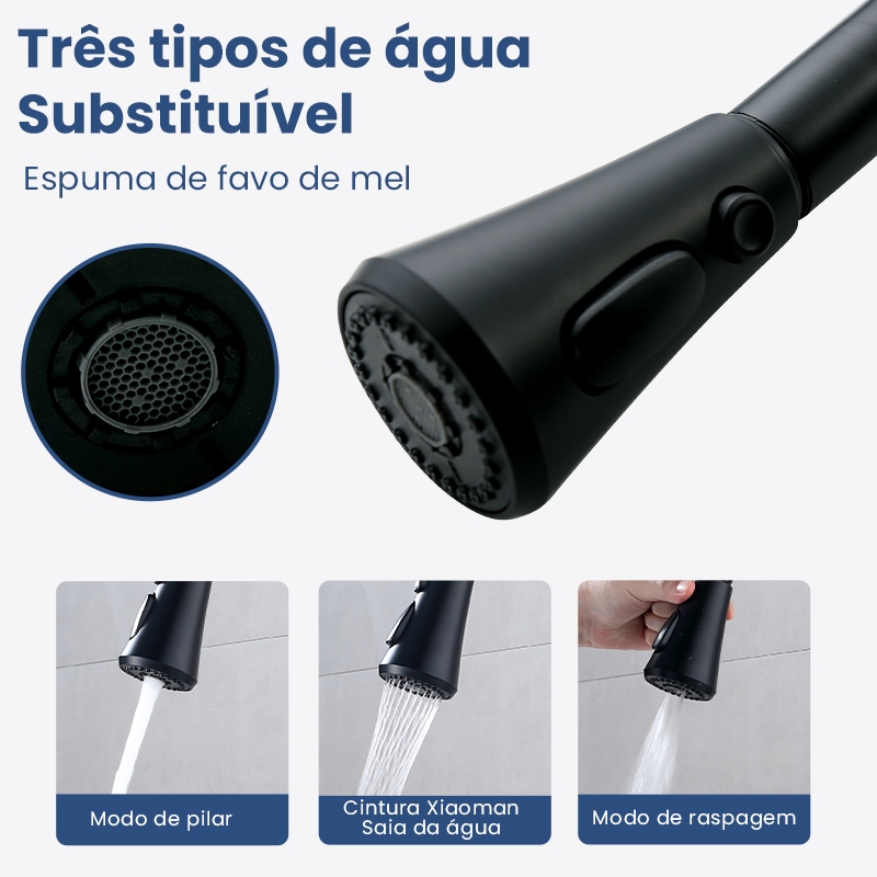 Torneira Cozinha Gourmet Monocomando Com Extensor Arejador Preta, Aço Escovado Ou Aço Inox