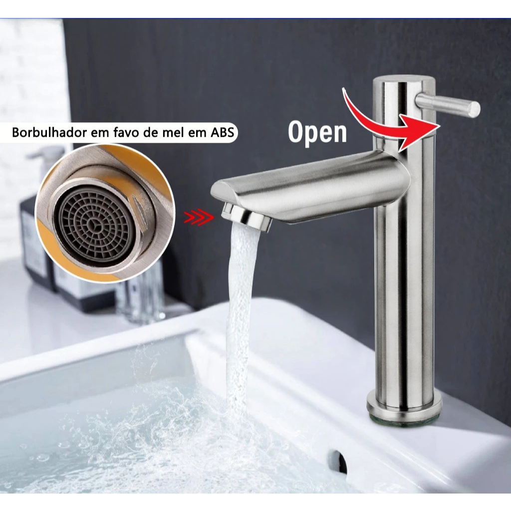 Torneira Monocomando Bica Alta De Aço Inoxidavel SUS 304 Alto Qualidade Para Lavatorio De Banheiro