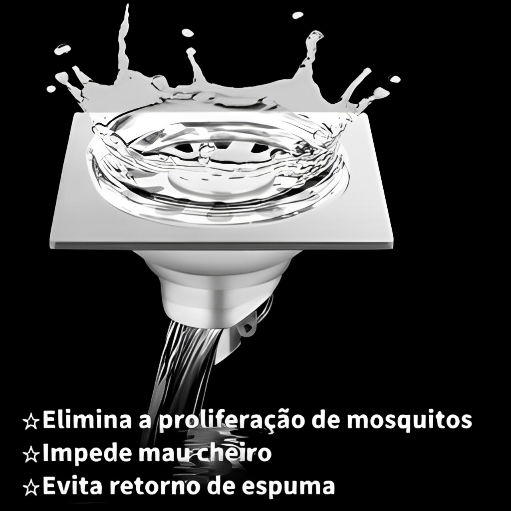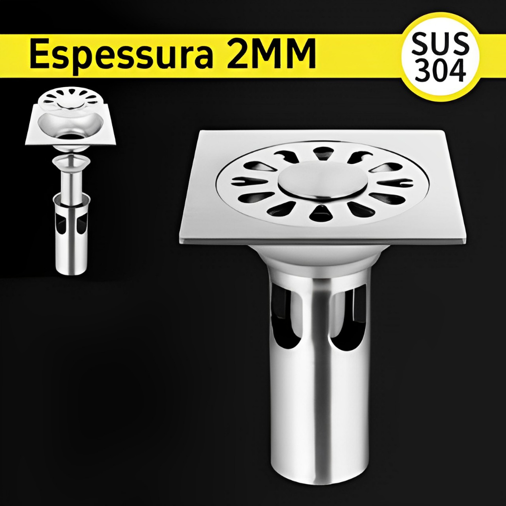 Ralo Inteligente Quadrado 10x10CM 2MM Espessura Anti Inseto/Odores Para Banheiro Aço SUS304