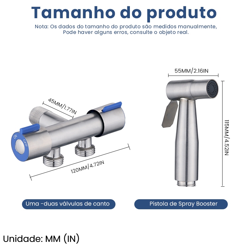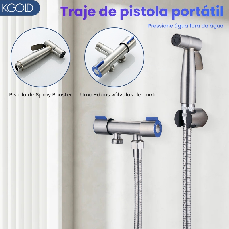 Ducha Higiênica Com Registro Torneira Dupla em Aço Inox 304 Aço Escovado Banheiro Lavabo KGOLD