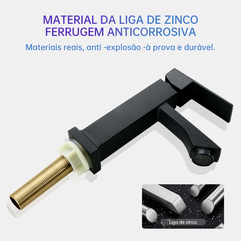 Torneira gourmet para lavatório de banheiro, luxuosa, preta/prateada, moderna, aço inoxidável, pia de alavanca única 1/2