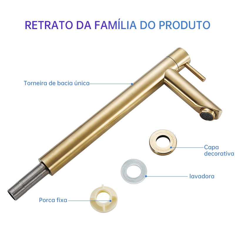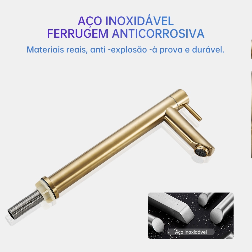 Torneira Monocomando Bica Alta Banheiro Dourada/Cromada/Preto 35cm KGOLD