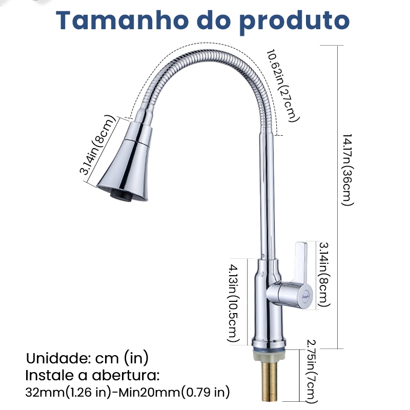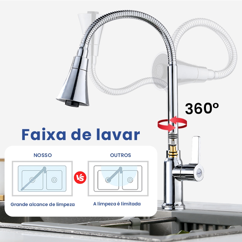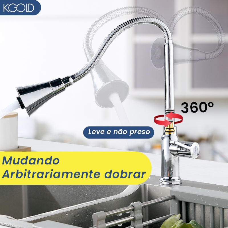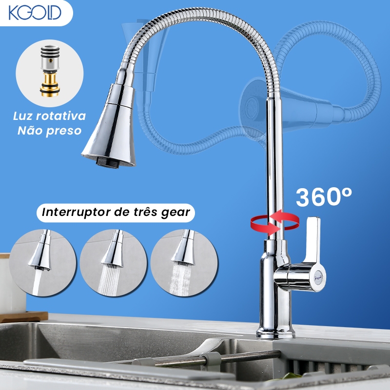Torneira Flexível de Cozinha Gourmet Mesa Bancada de água fria 2 Jatos 1/4 de Volta de Metal KGOLD