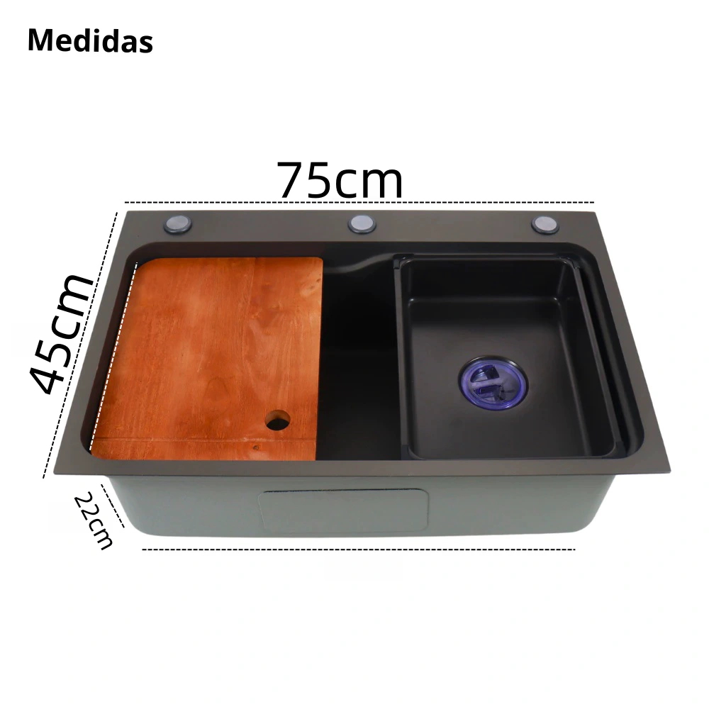 Cuba Para Pia Cozinha Gourmet Inox Luxo Preto Com Escorredor E Válvula (Sem Toneira) 75X46X22cm