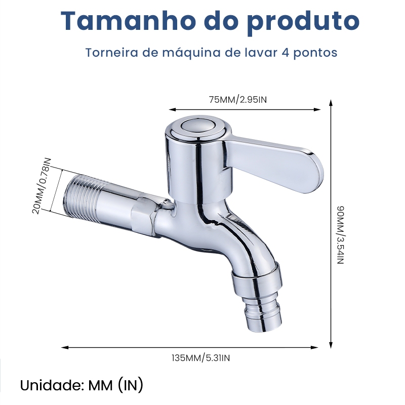 Torneira Jardim/Tanque Maquina Lavar Parede Abs Cromado