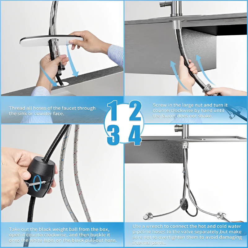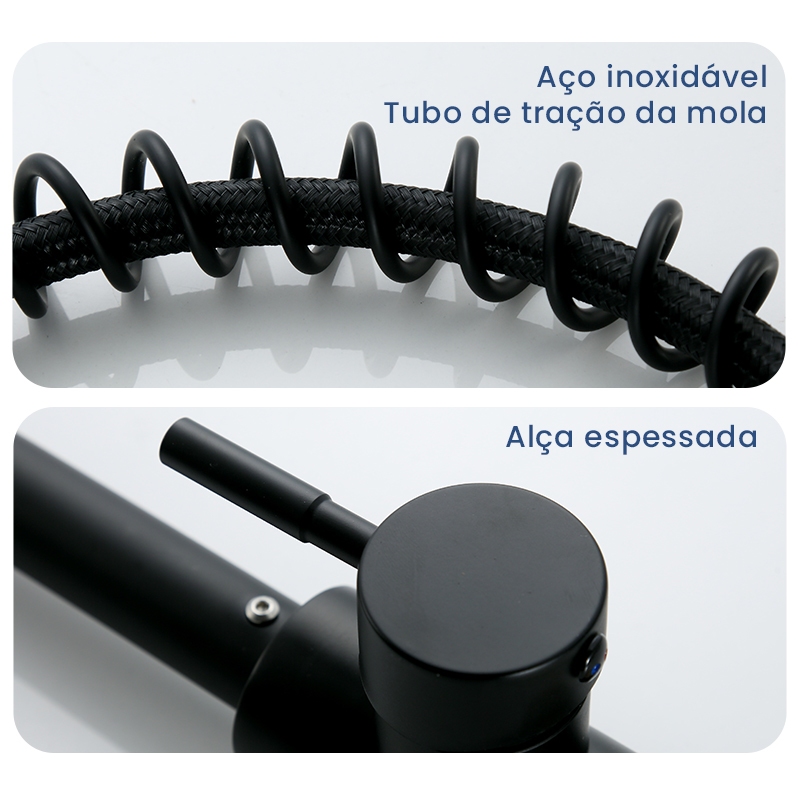Torneira Cozinha Gourmet de Bancada Monocomando Preta Com Spray Flexível Misturador, Torneira Rotação 360°