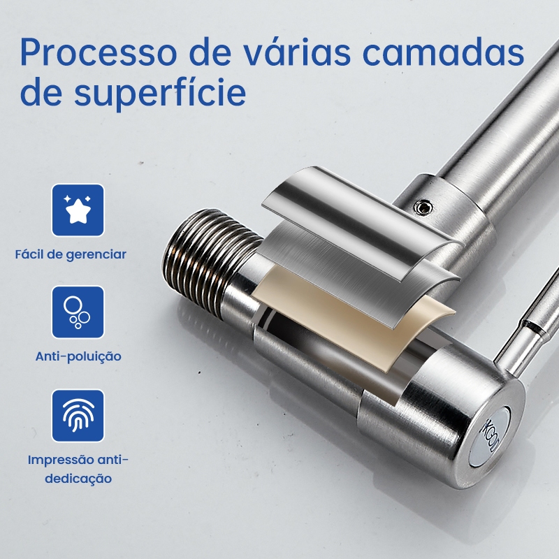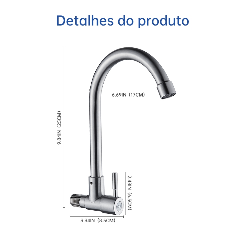 Torneira giratória de aço inoxidável KOGLD, longa prateada para parede