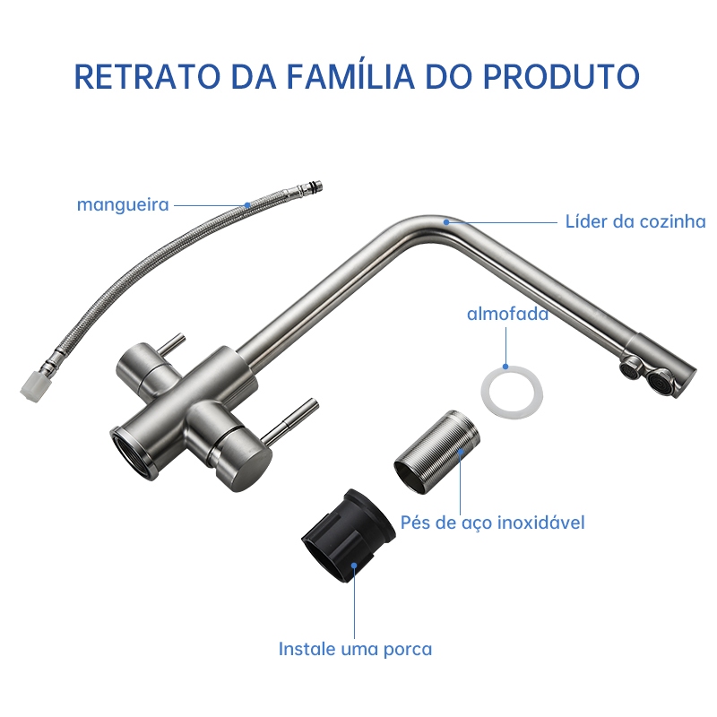 Torneira Gourmet para Cozinha Filtrada de Bancada Luxo Escovado em Aço Inox com Saída para Filtro