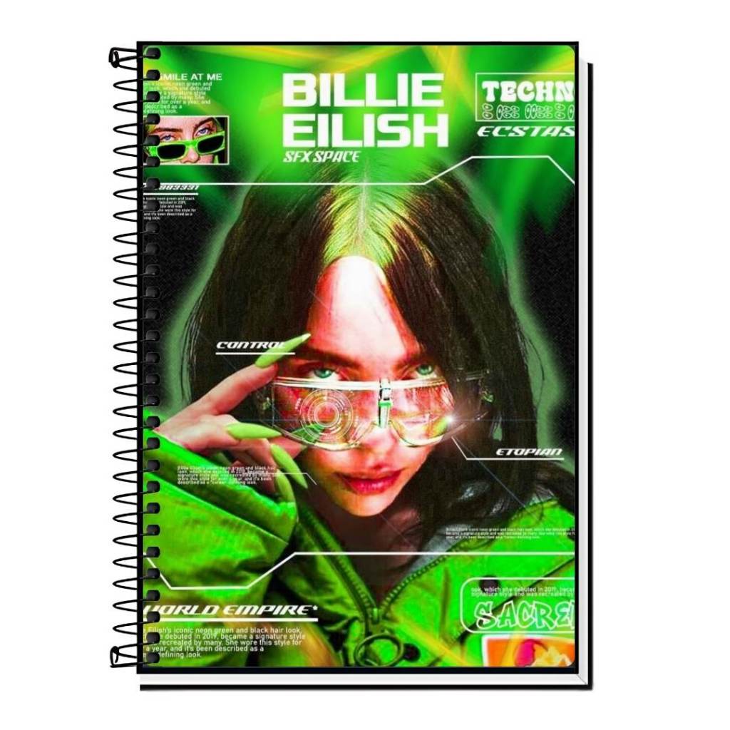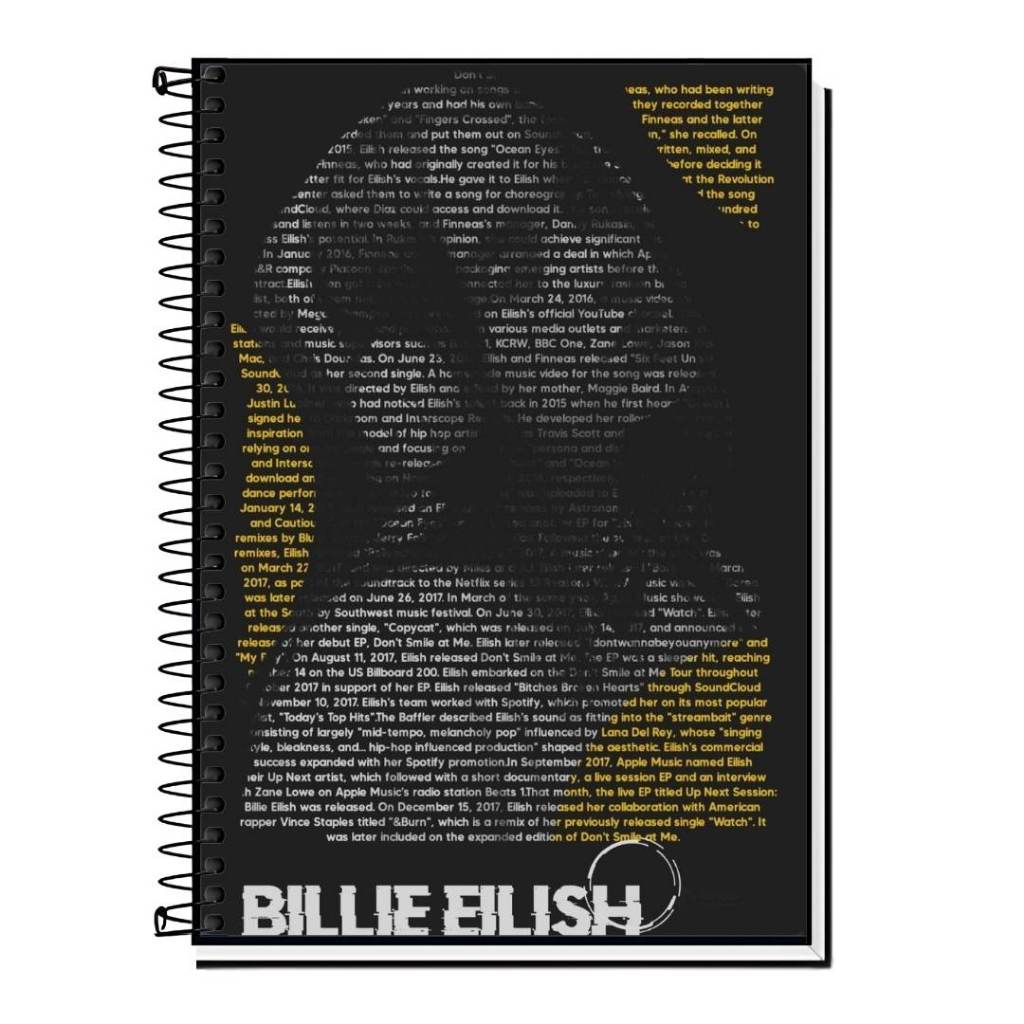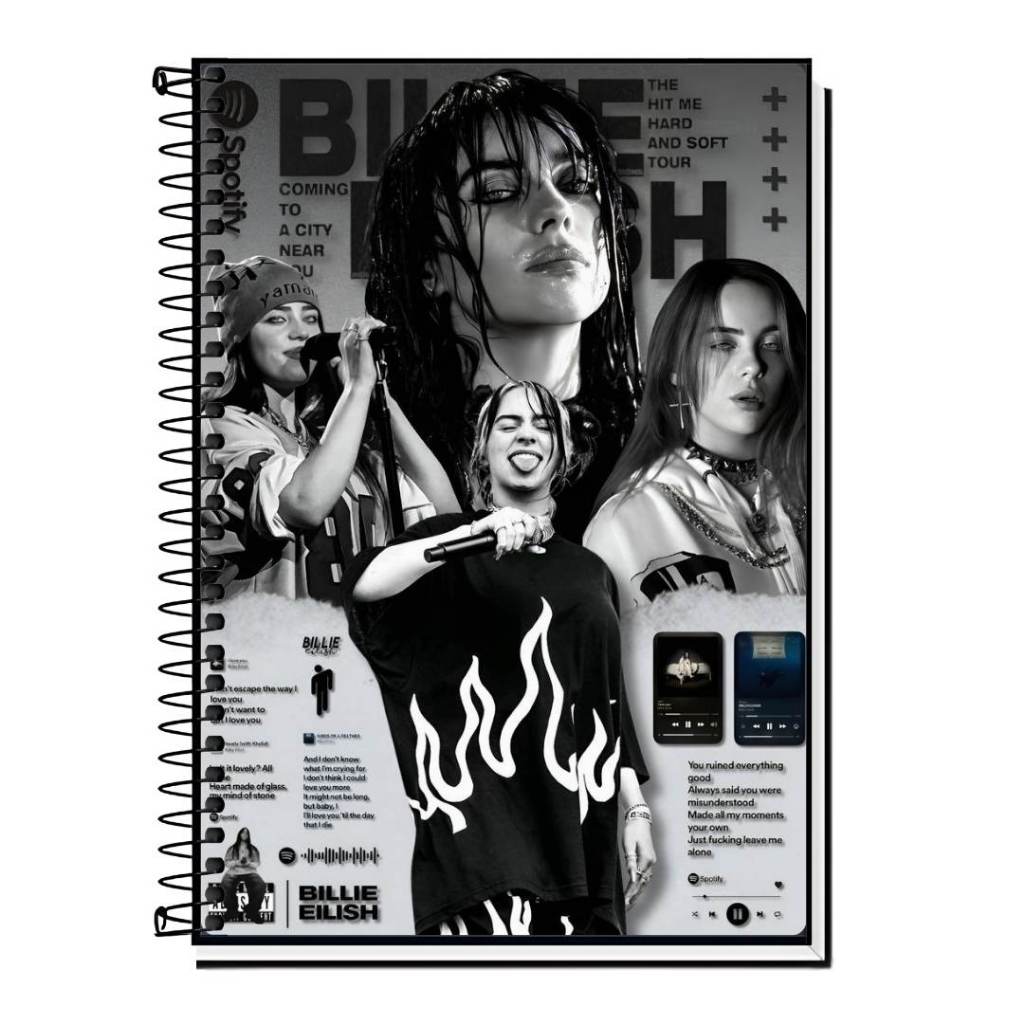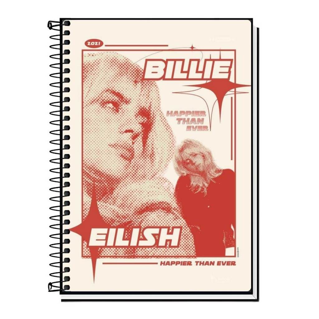 Caderno personalizado da billie Vários Modelos 1 10 15 20 Matérias Capa Dura Espiral Estudante Faculdade