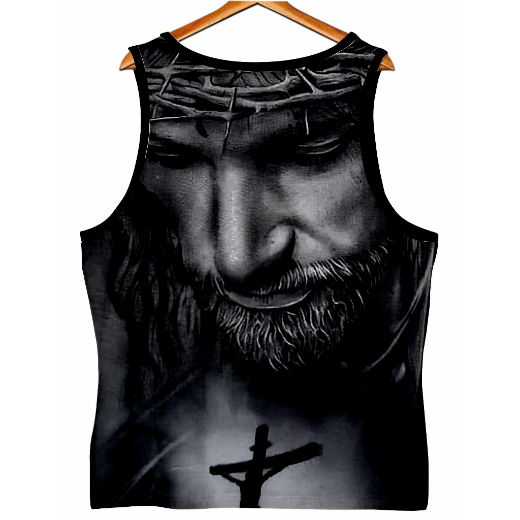 Camiseta Regata Jesus Crucificado Cinza Poliéster