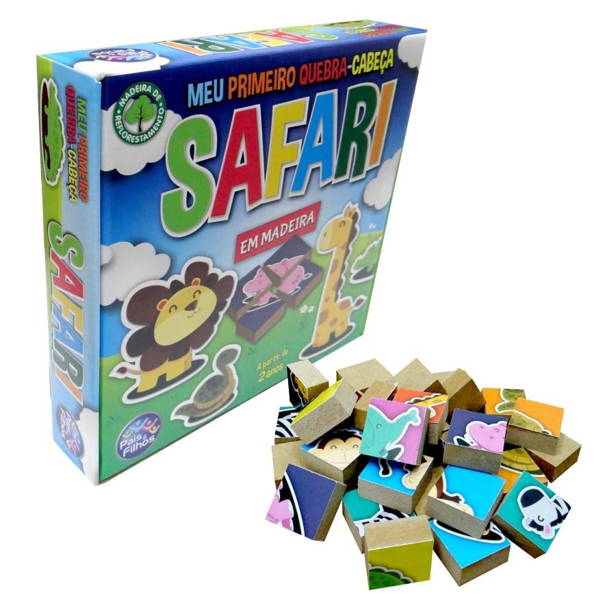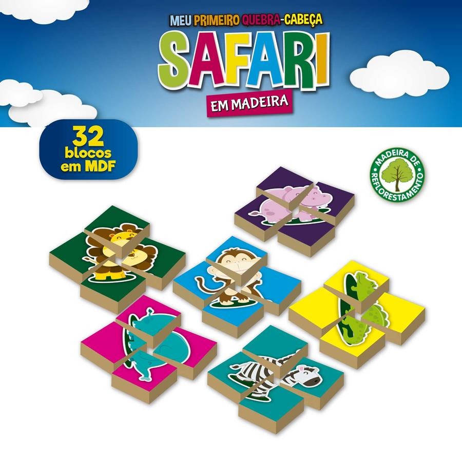 Meu Primeiro Quebra-Cabeça Safari - 32 Peças em Madeira +24 Meses Pais e Filhos