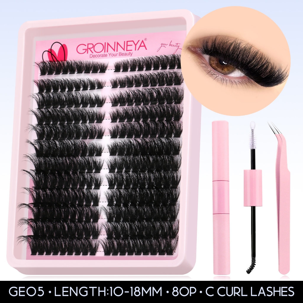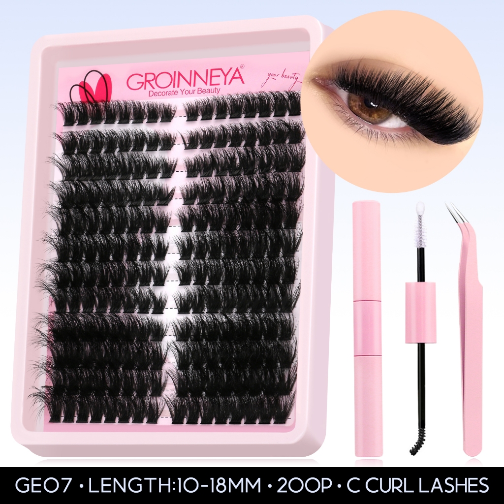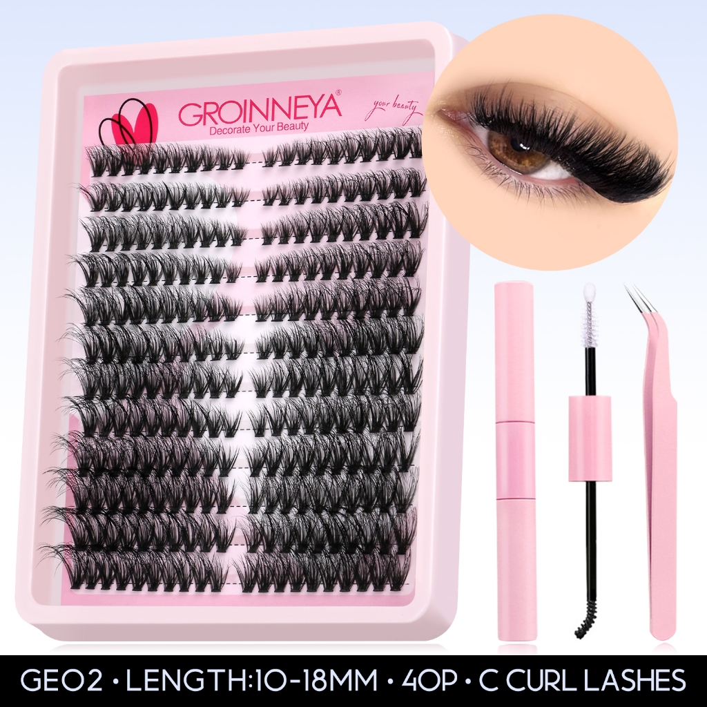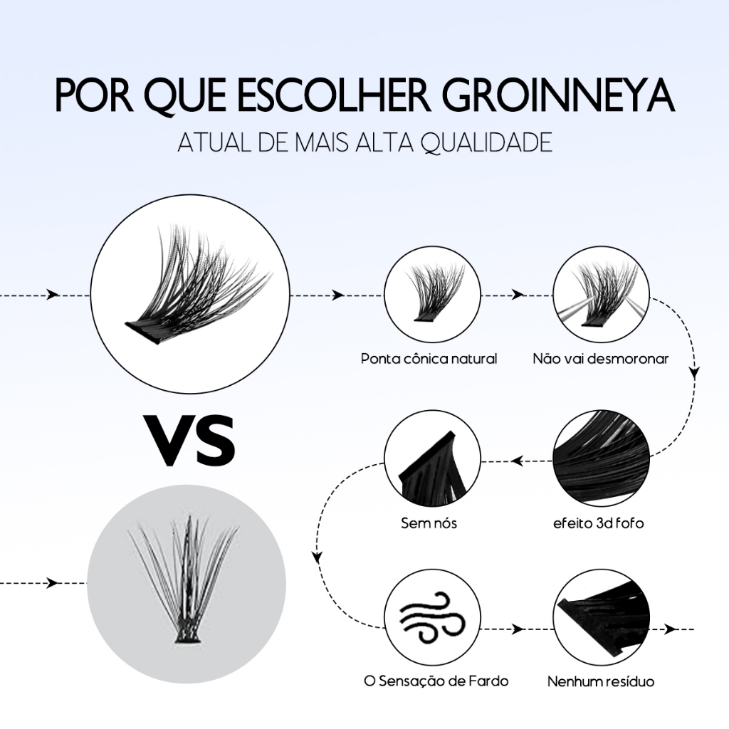 GROINNEYA Cílios Postiços 3D Conjunto De Cola Para Individuais Pinças Lash Cluster Natural Fofo Grosso Grande Capacidade