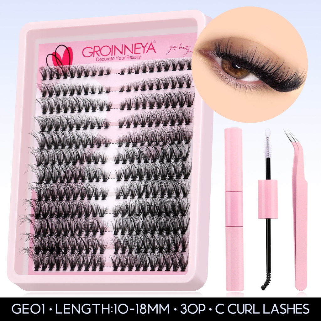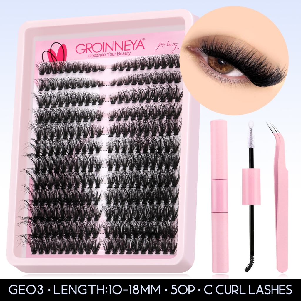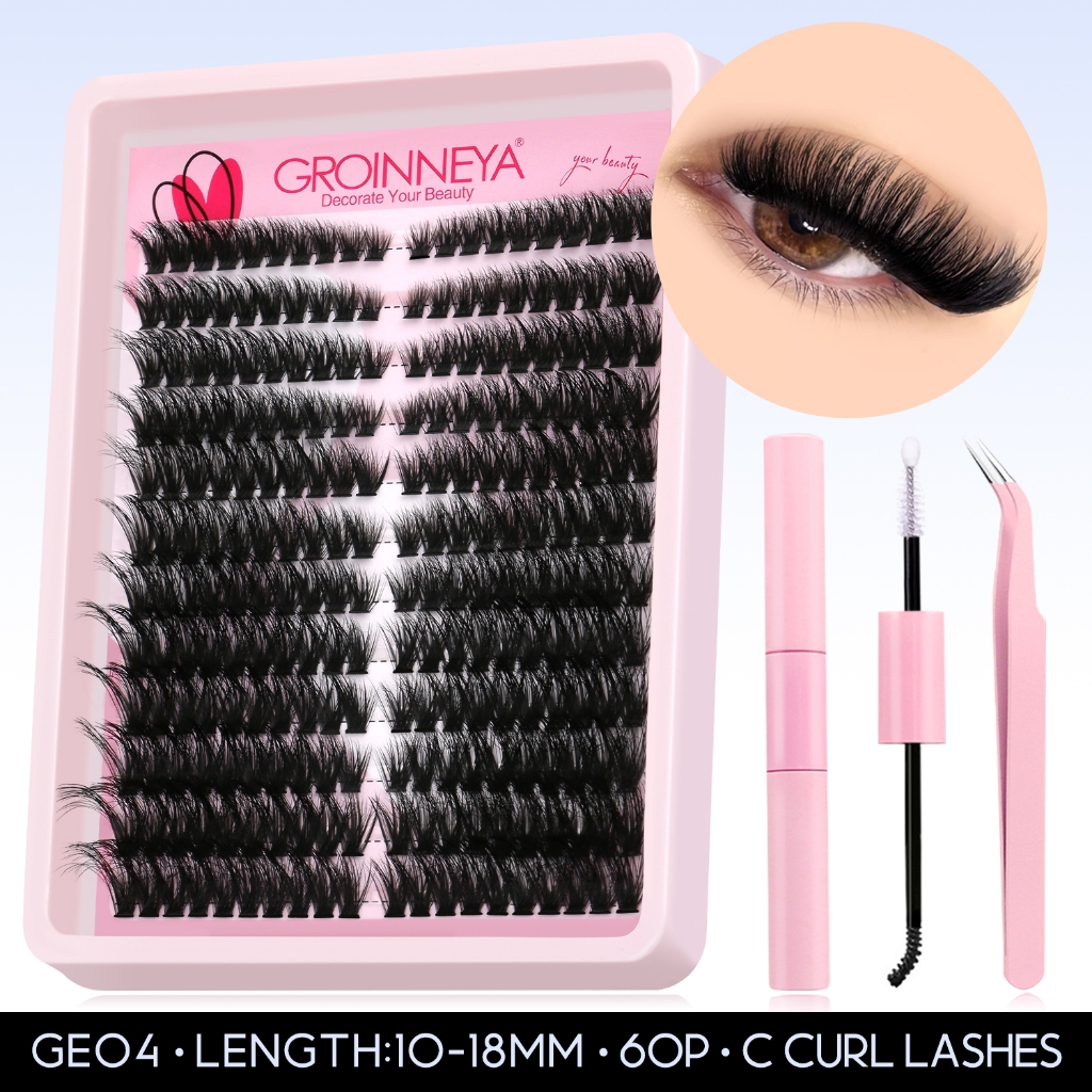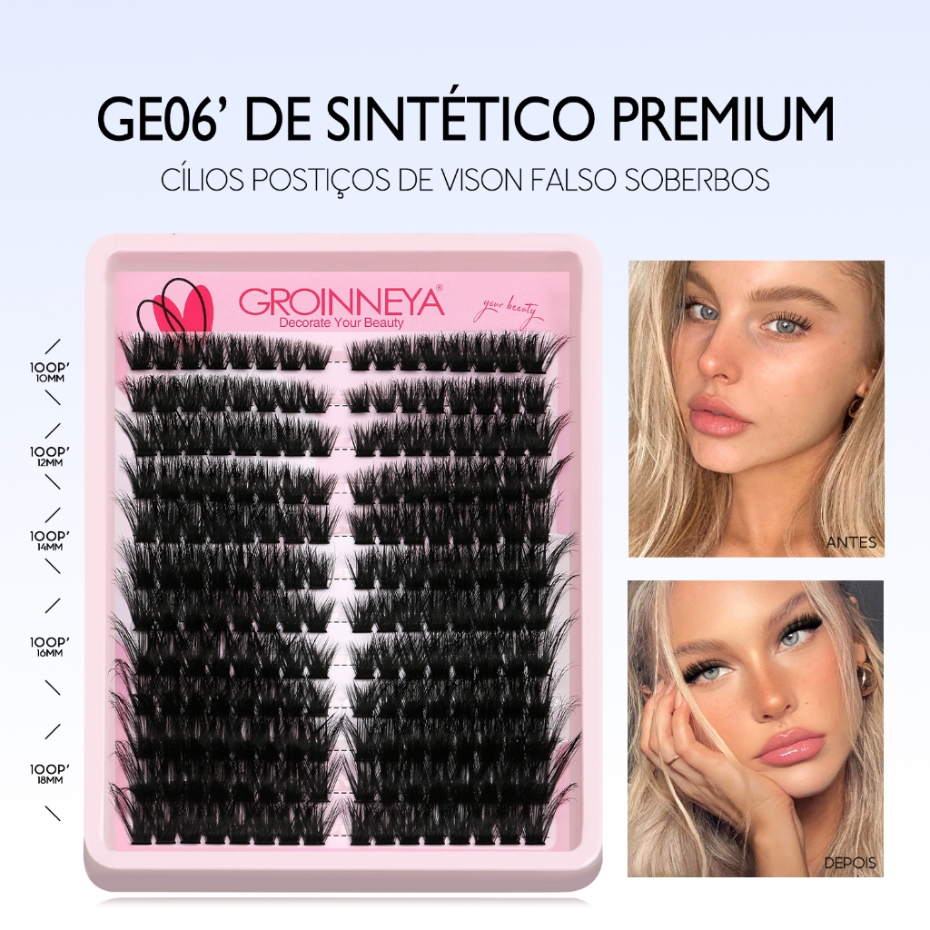 GROINNEYA Cílios Postiços 3D Conjunto De Cola Para Individuais Pinças Lash Cluster Natural Fofo Grosso Grande Capacidade