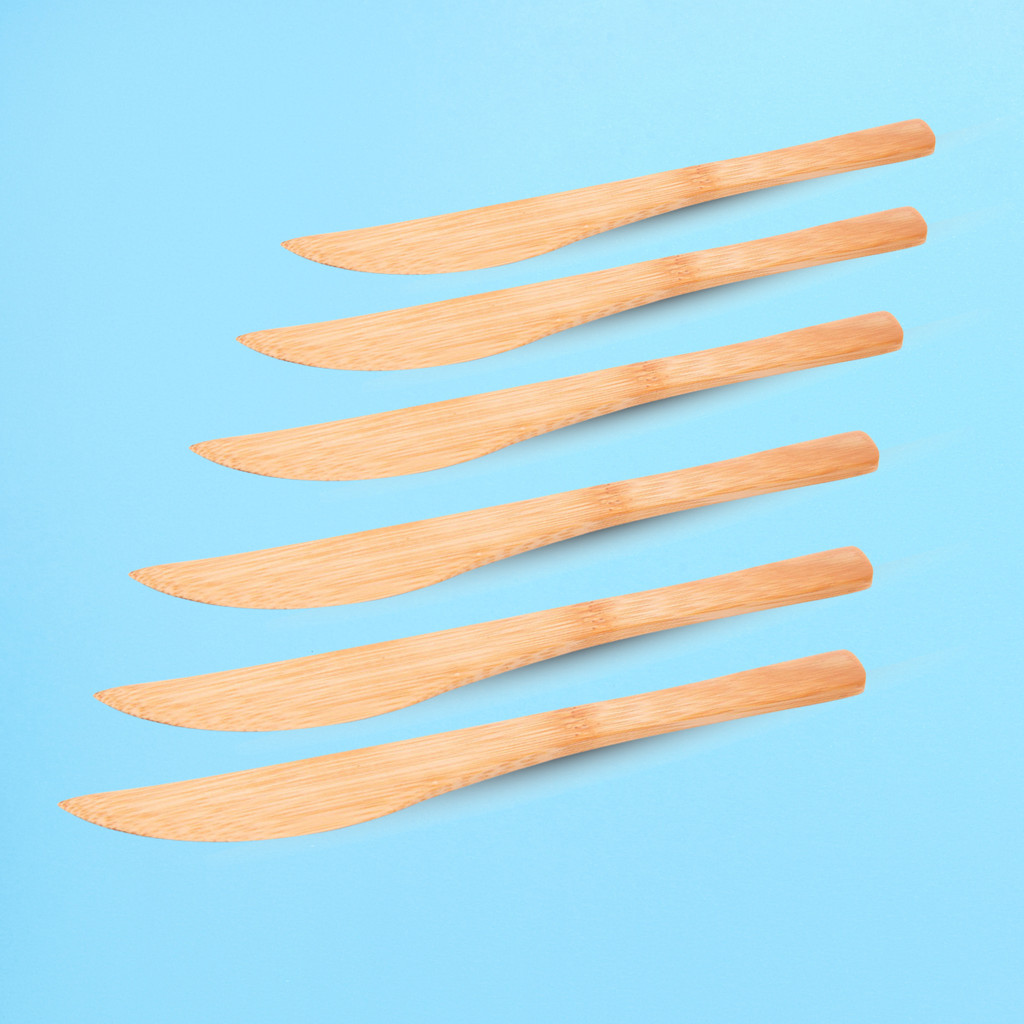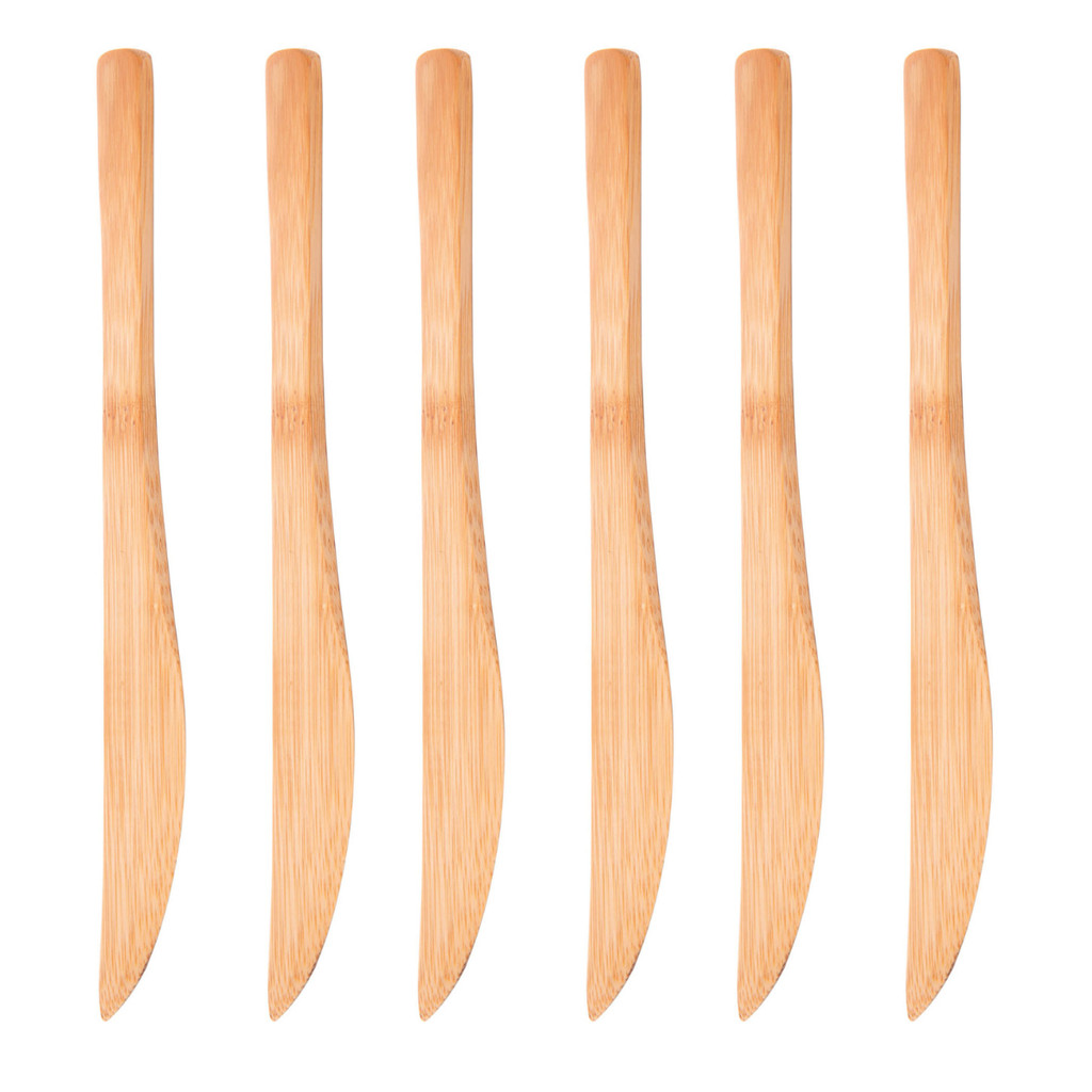 Jogo De 6 Facas Pate Manteiga Geleia Espatula Bambu 18cm